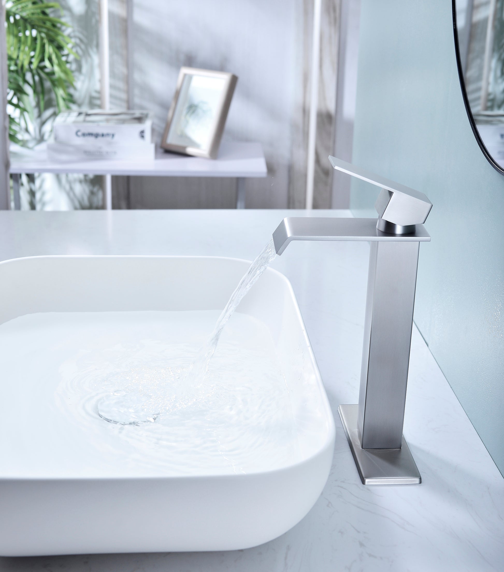 Waterfall Spout Bathroom Faucet,Single Handle Bathroom Vanity Sink Faucet Brushed Nickel Stainless Steel