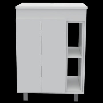 White 2 Shelf Rectangle Freestanding Vanity Cabinet White Particle Board