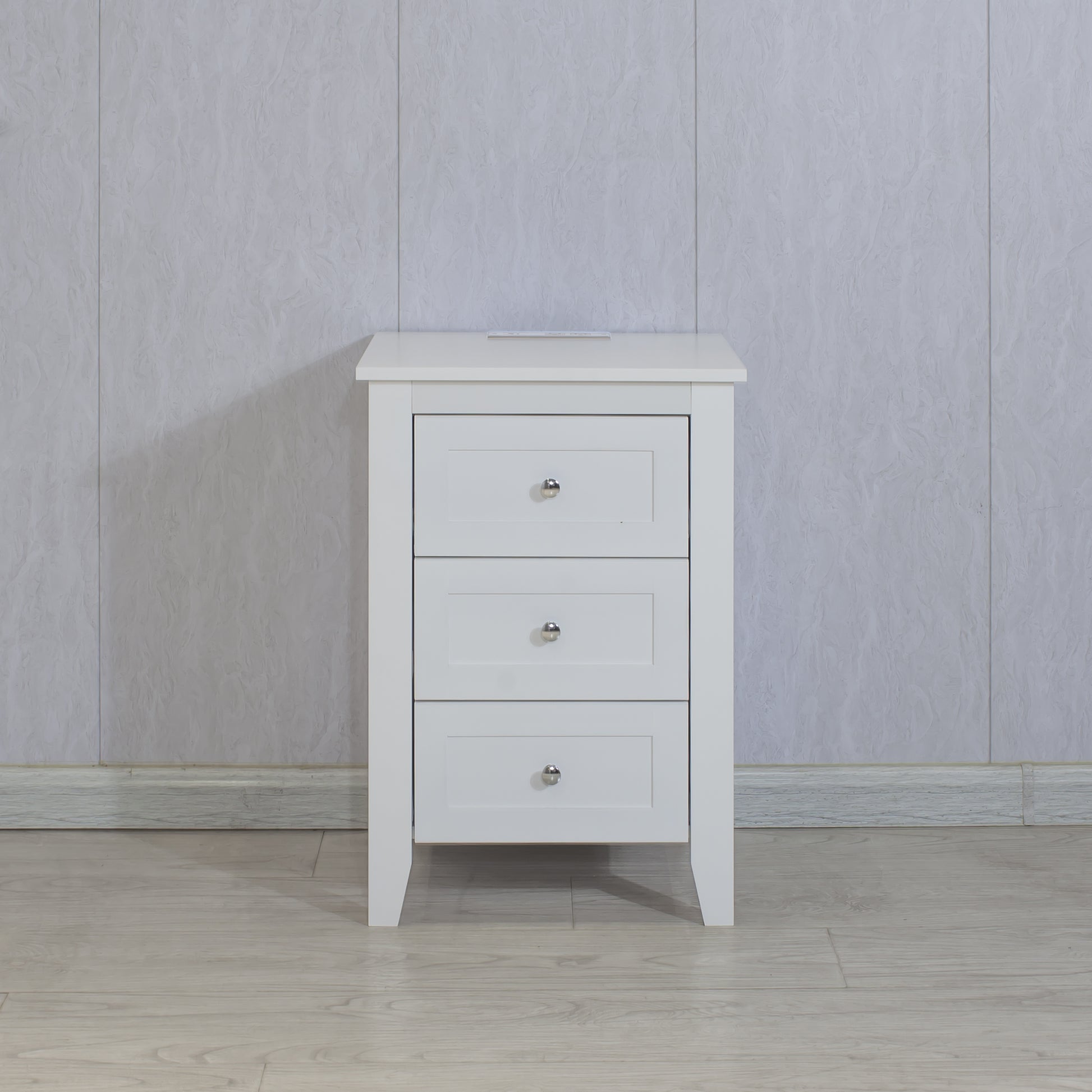 White 3 Drawer Nightstand With Charging Station And Usb Ports & Power Outlets,Wooden Bed Side Table End Table Modern Night Stands For Bedrooms White Mdf
