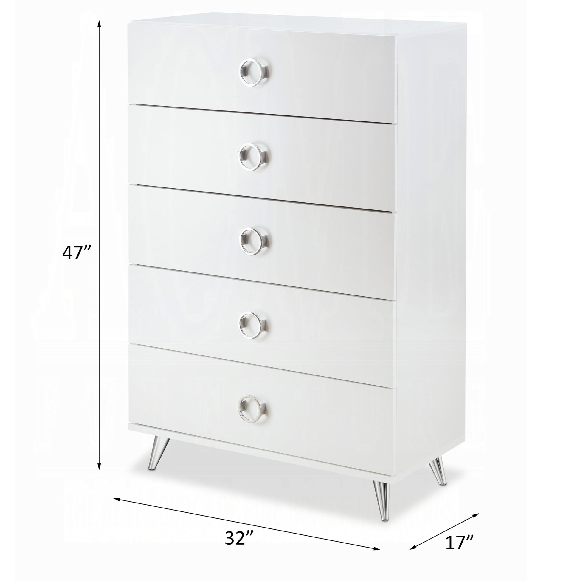 White 5 Drawer Chest With Ring Pull Handles White Bedroom Contemporary Particle Board Mdf