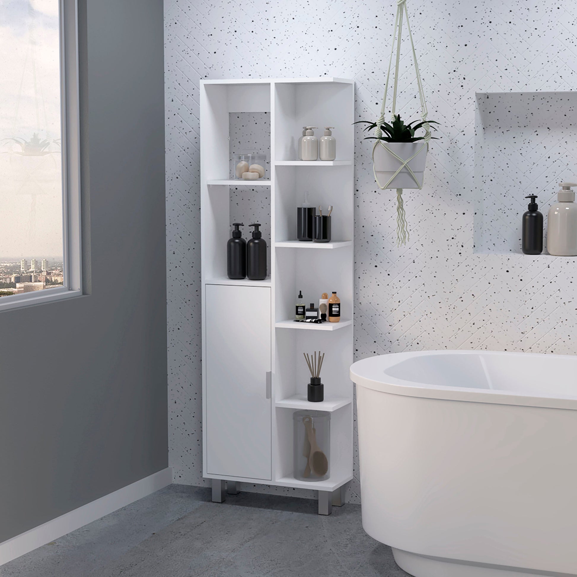 White 9 Shelf Linen Cabinet White 1 5 Up To 17 In 24 To 31 In Bathroom Freestanding 5 10 Inches Wood