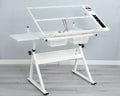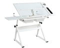 White Adjustable Tempered Glass Drafting Printing Table With Chair White Steel
