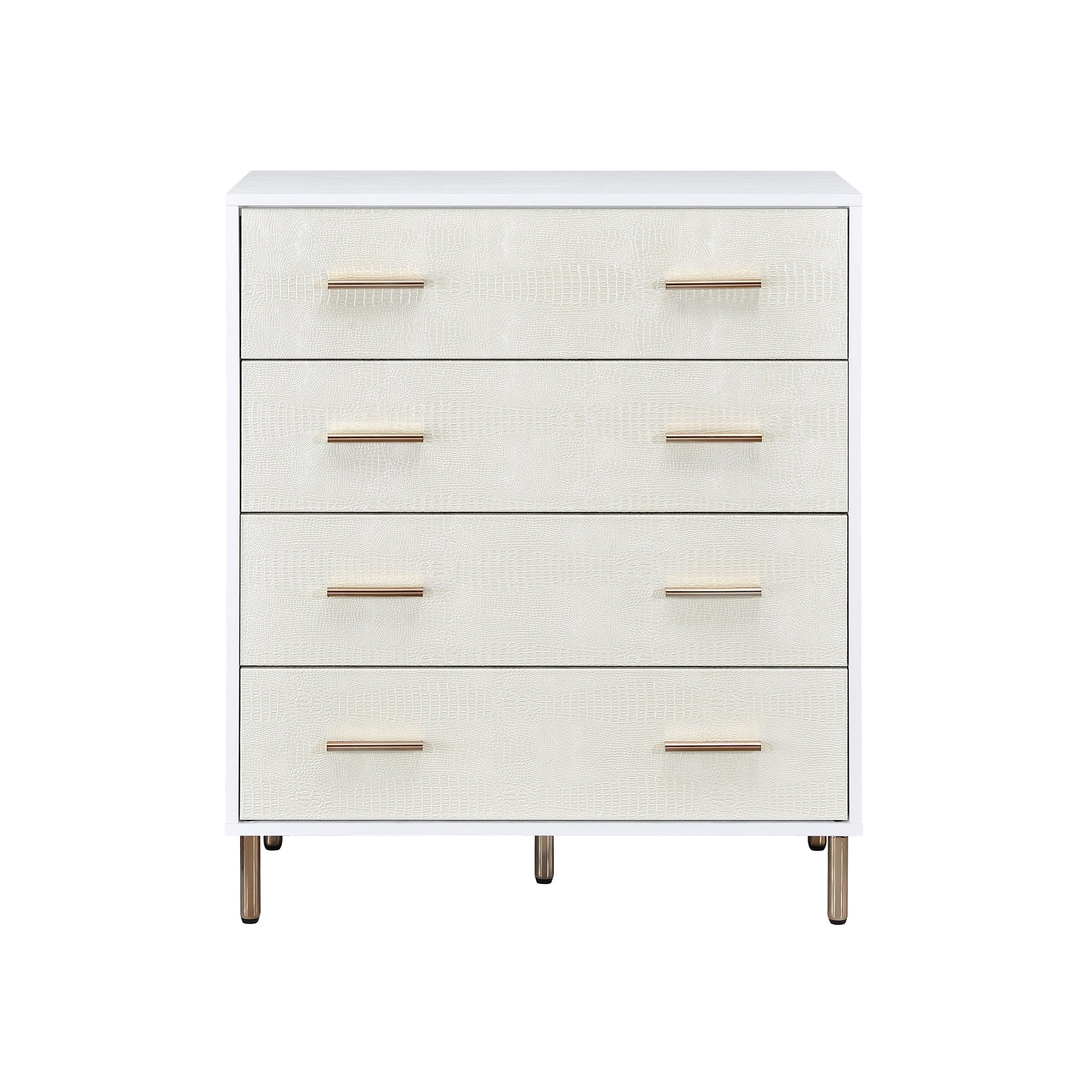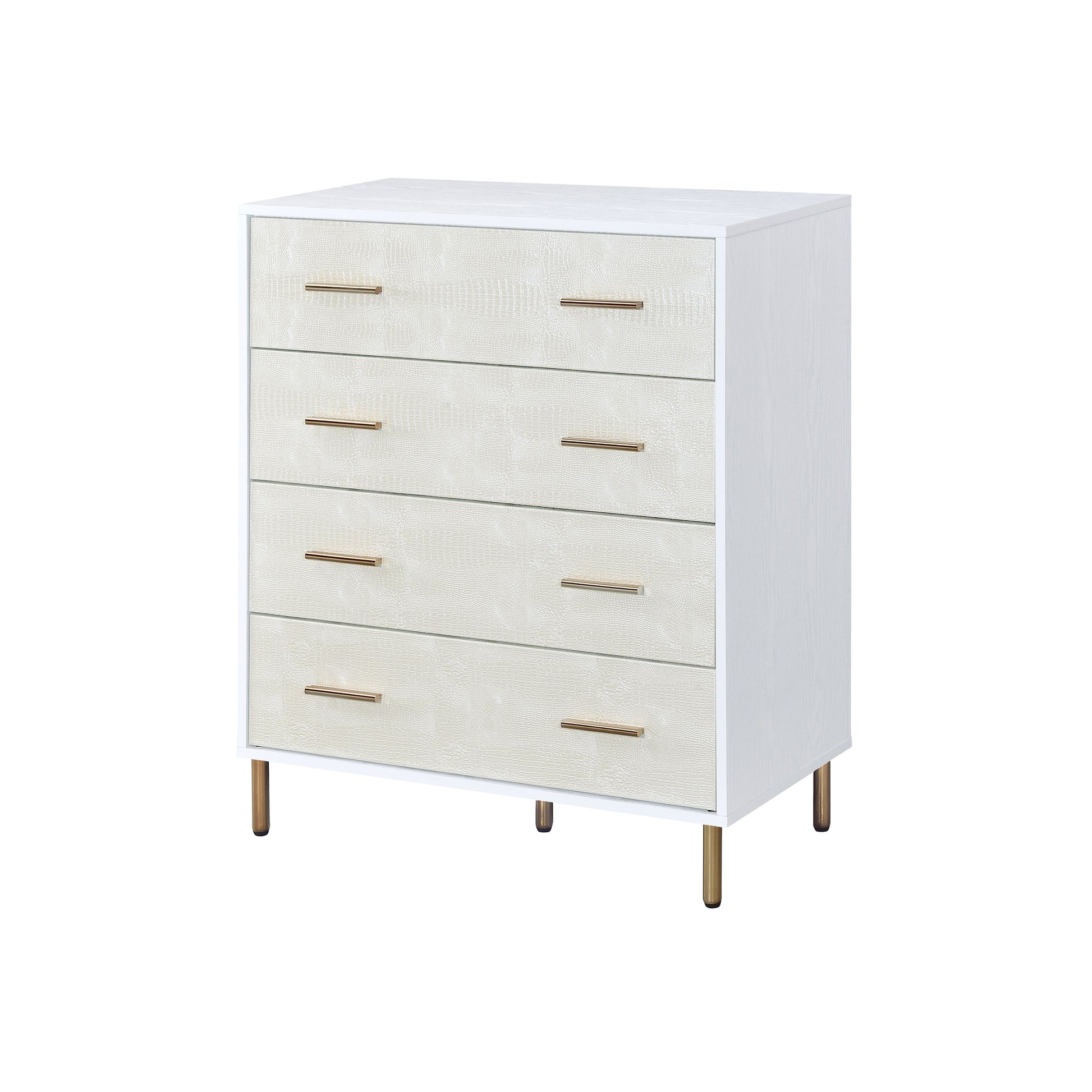 White And Champagne 4 Drawer Chest White Gold Bedroom Wood Metal