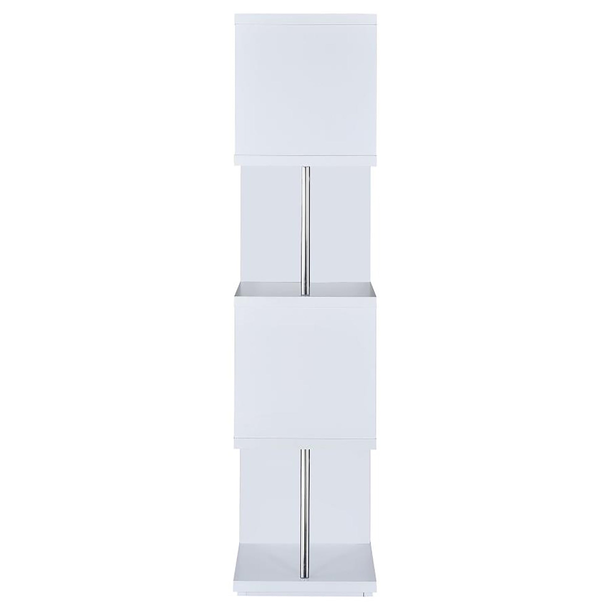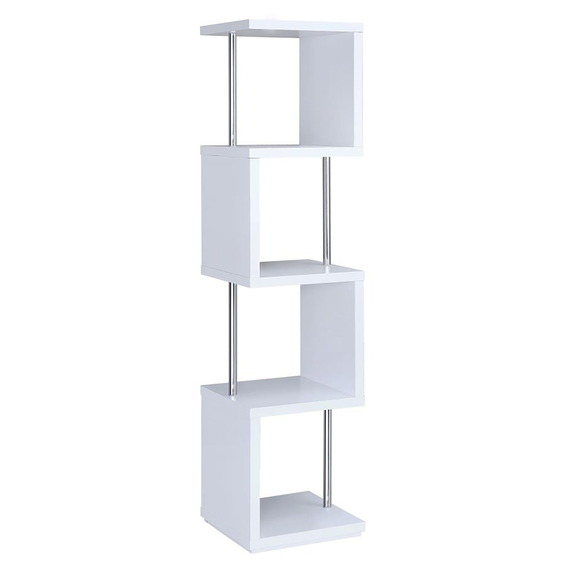 White And Chrome 4 Tier Bookcase 4 White White Geometric Vertical Office Open Back Wood Contemporary,Modern Wood Metal