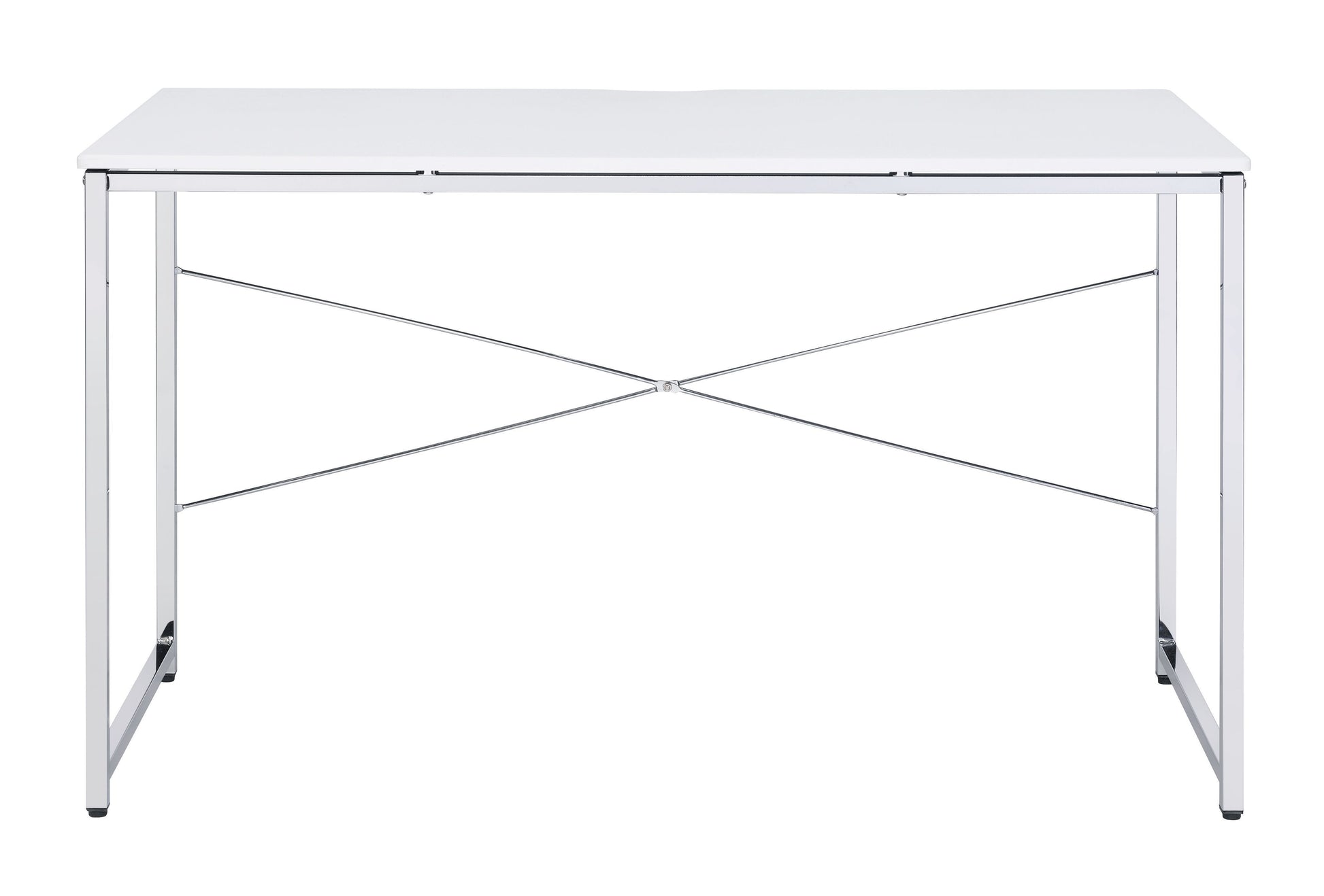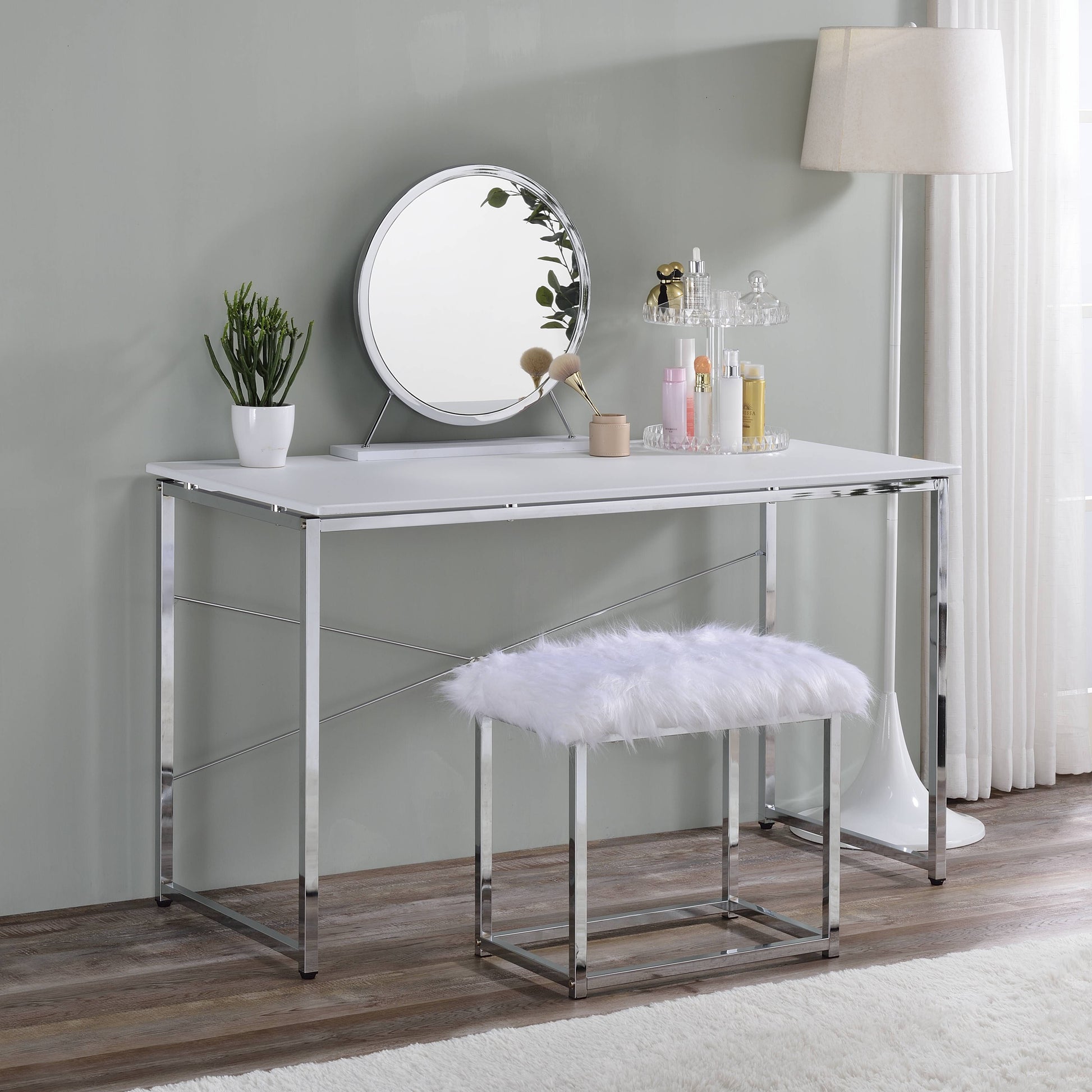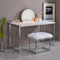 White And Chrome Vanity Desk With X Shape Cross Bar White Silver Bedroom White Wood Metal