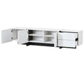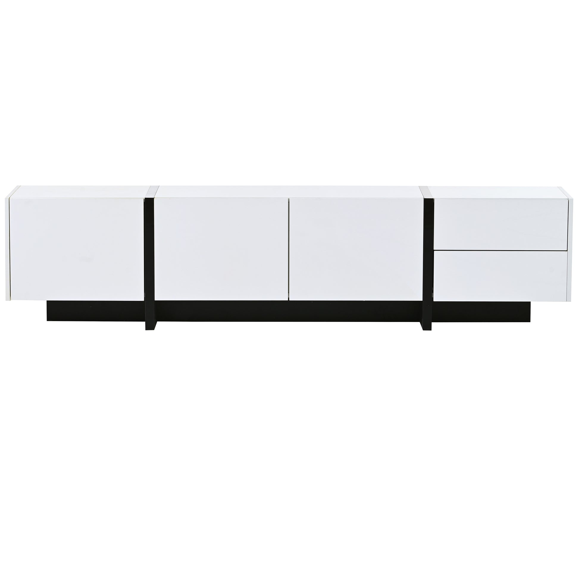 White & Black Contemporary Rectangle Design Tv Stand, Unique Style Tv Console Table For Tvs Up To 80'', Modern Tv Cabinet With High Gloss Uv Surface For Living Room. White 80 89 Inches Particle Board