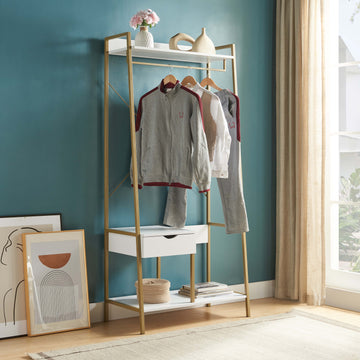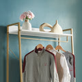 White Clothes Rack With Metal Frame And Open Shelves In White And Gold White Gold Mdf