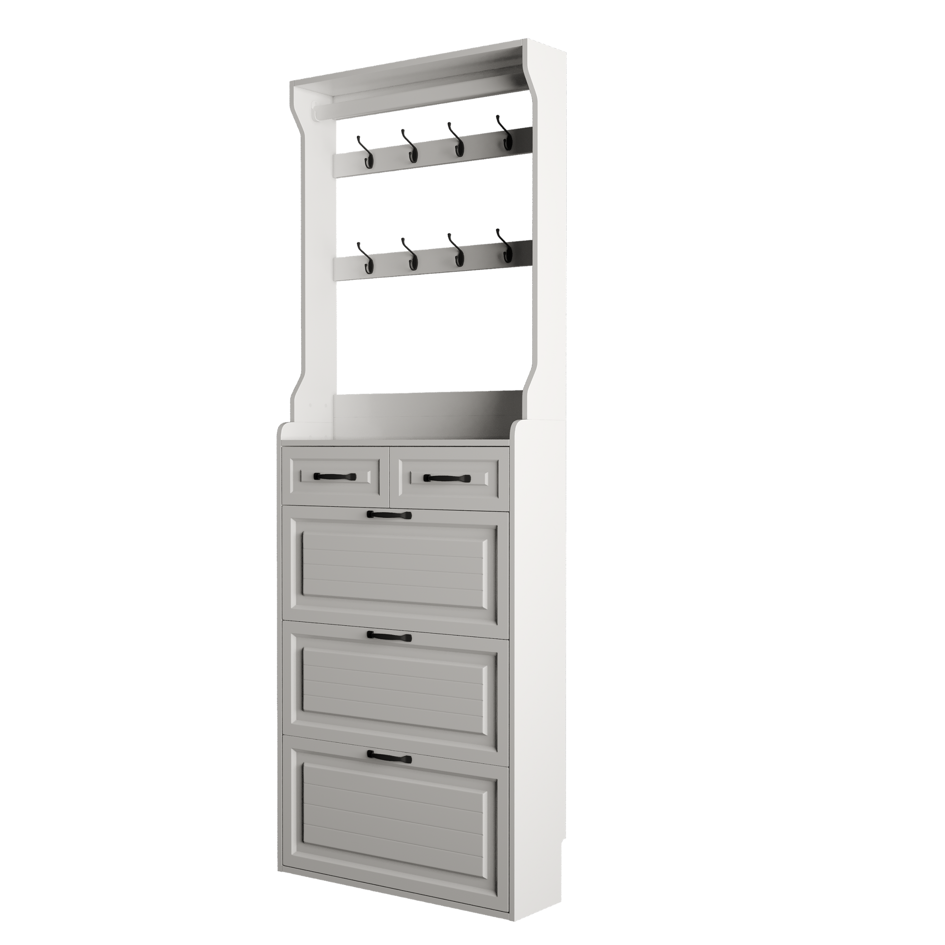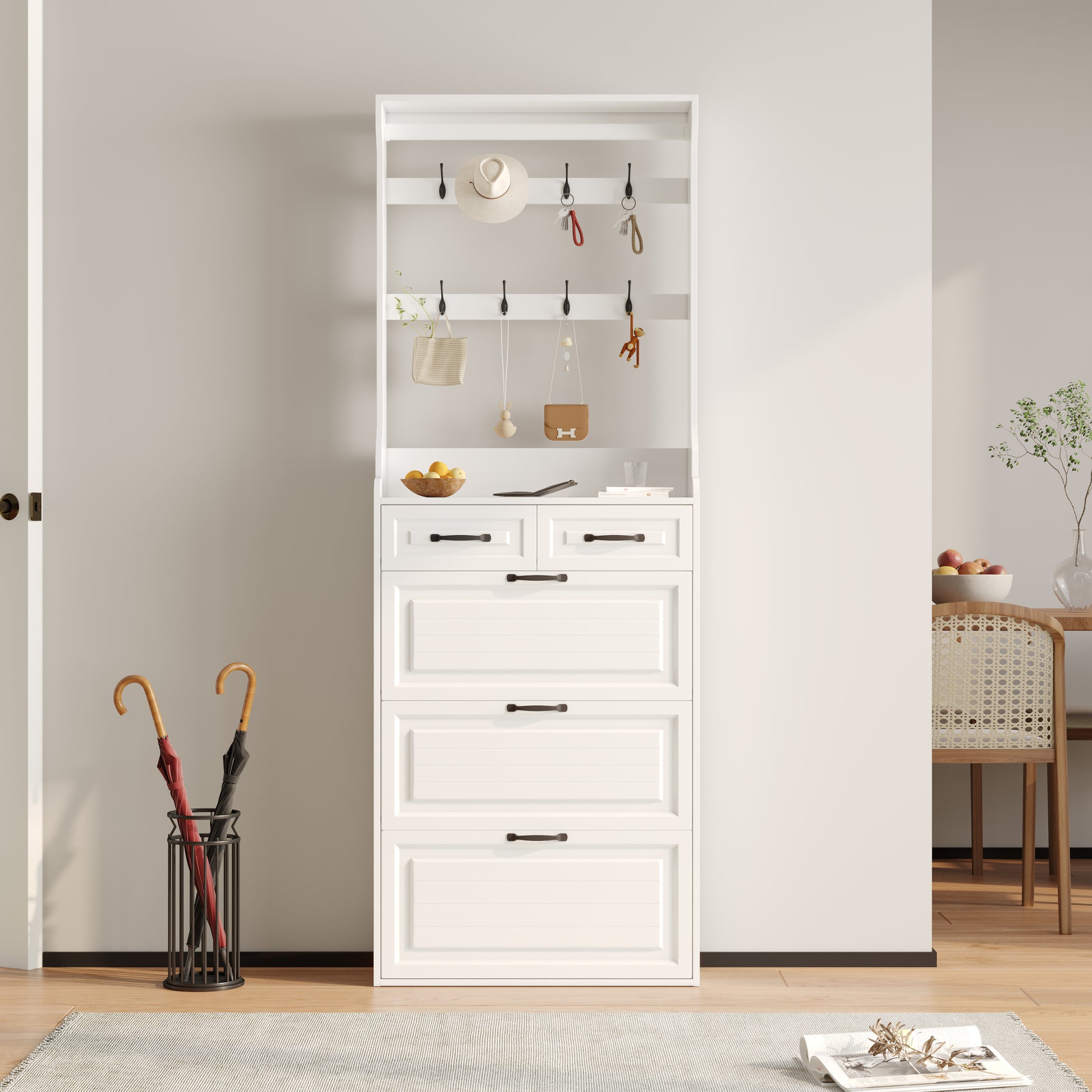 White Color Shoe Cabinet With 3 Doors 2 Drawers With Hanger,Pvc Door With Shape ,Large Space For Storage Freestanding 3 4 Spaces White Primary Living Space Adjustable Shelves American Design,American Traditional,Antique,Art Deco,Artsy Particle Board Mdf