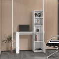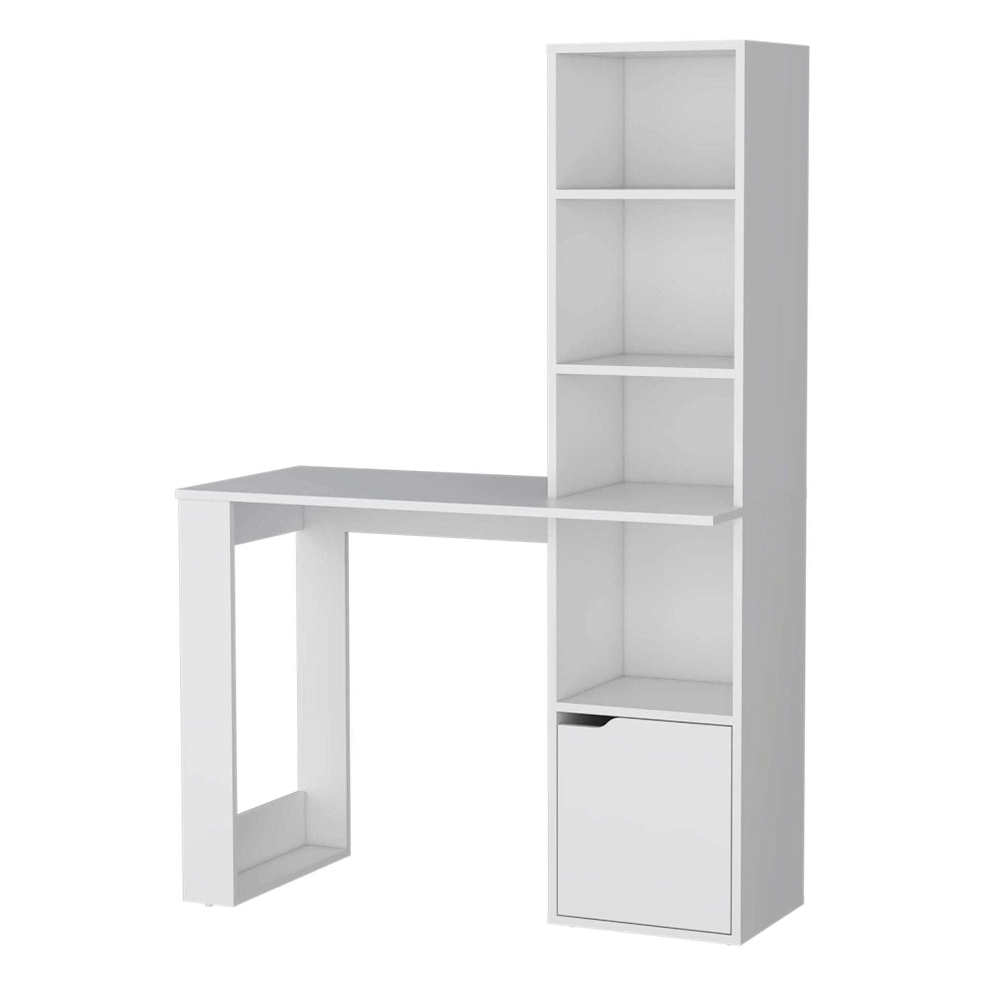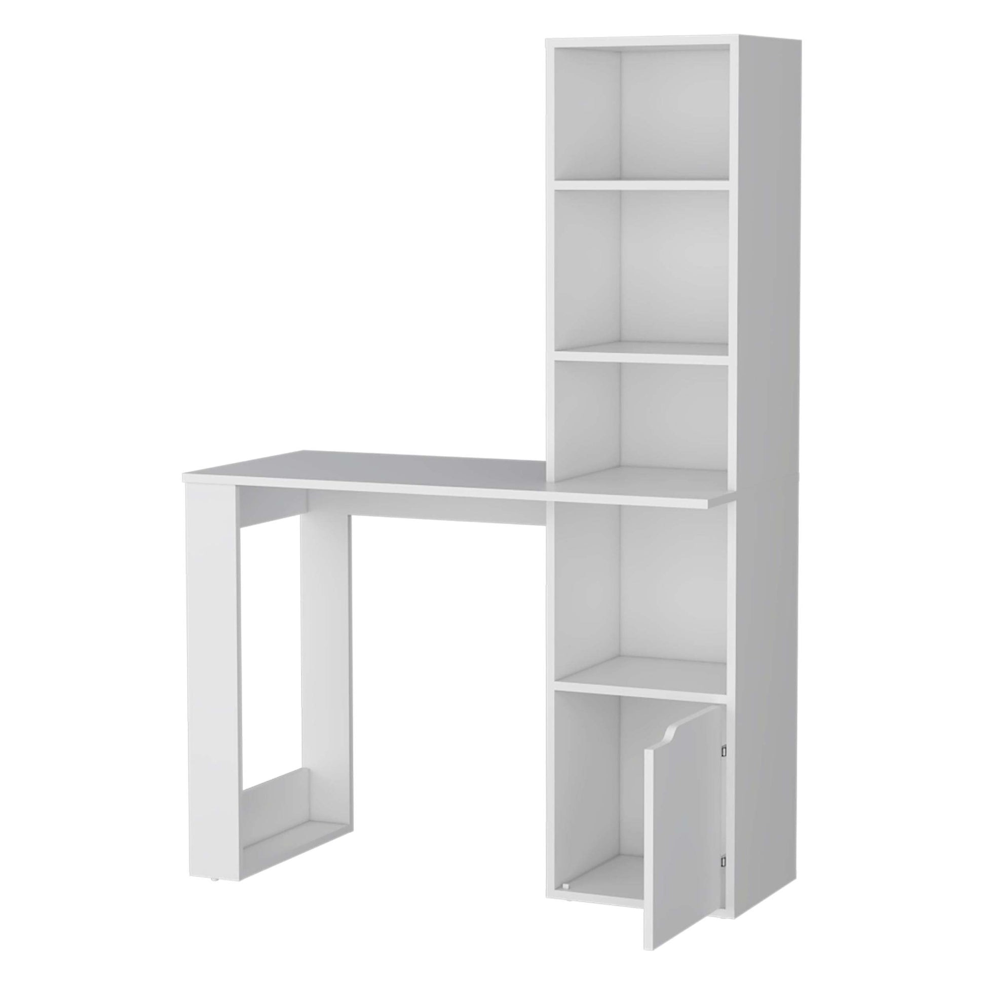 White Computer Desk With 4 Tier Bookcase And 1 Door Cabinet White Engineered Wood