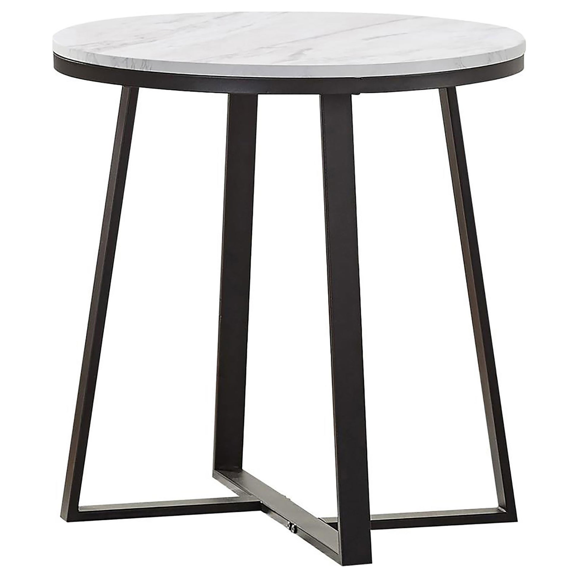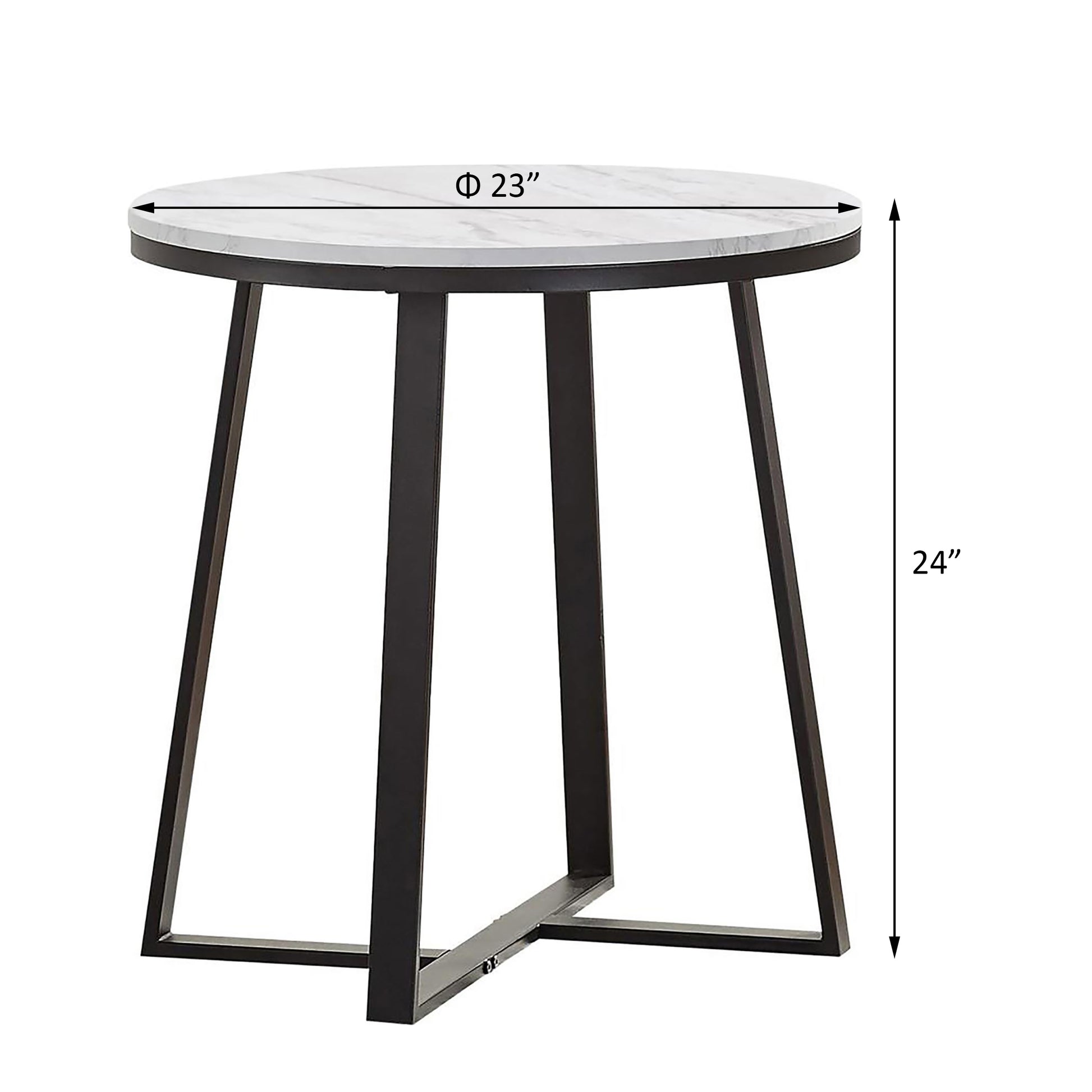 White Faux Marble And Matte Black End Table White Primary Living Space Contemporary,Modern Round Coffee & End Tables Wood Sled