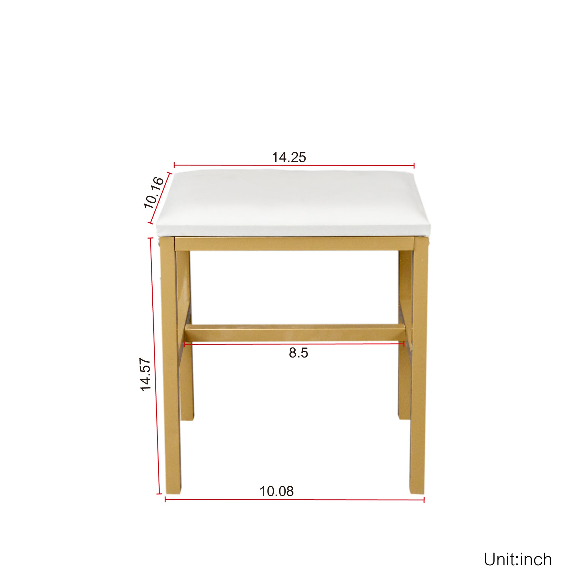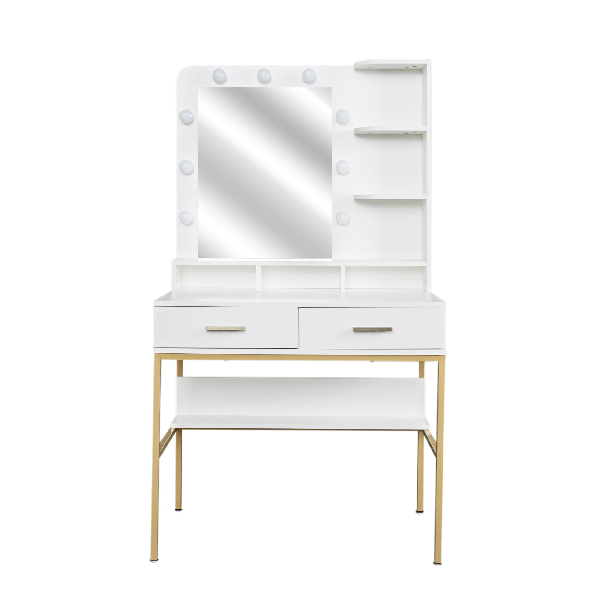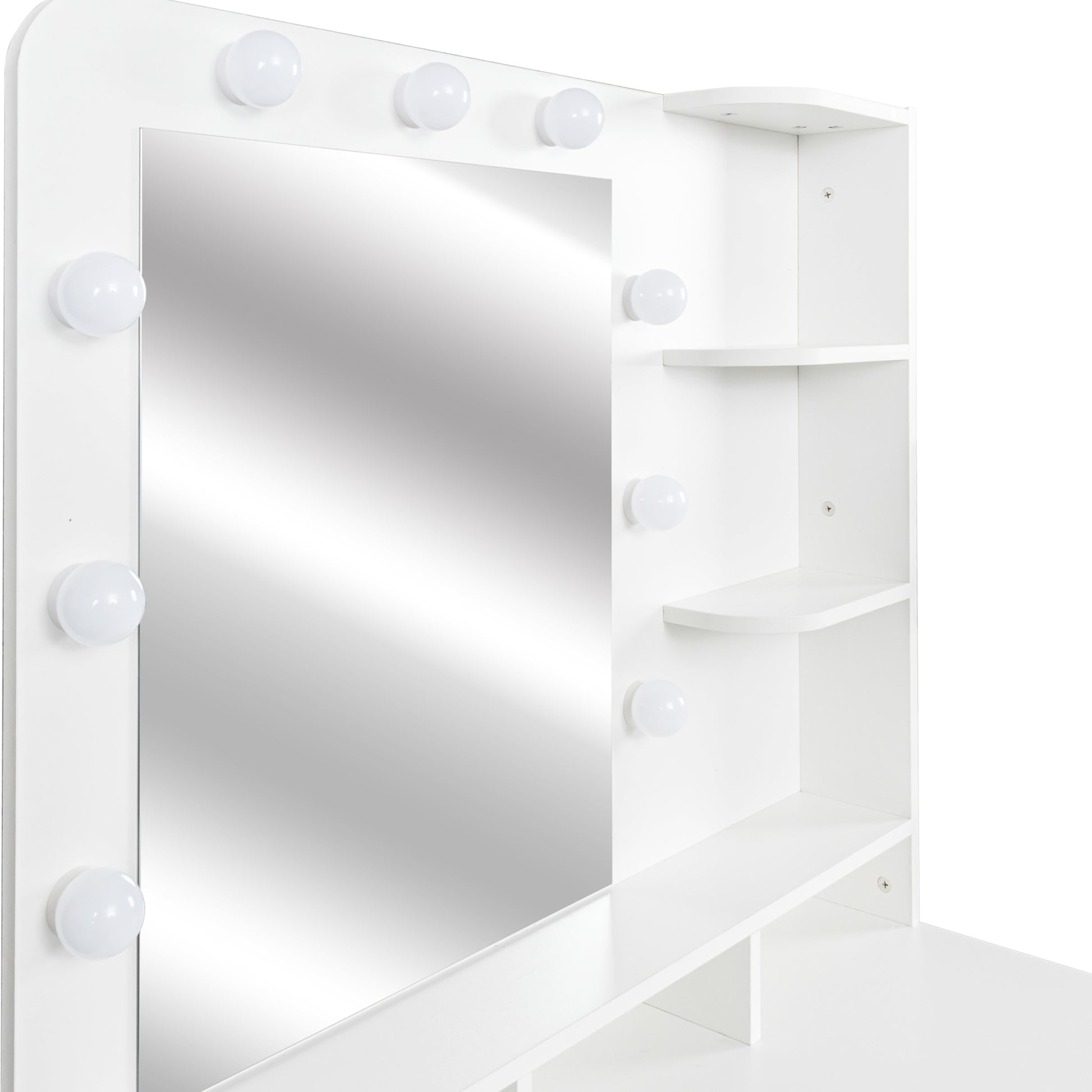 White Modern Simple Vanity With Stool, Solid Metal Frame Construction, 9 Led Lights Illuminate Makeup Mirror, Adjustable Brightness White Particle Board Mdf