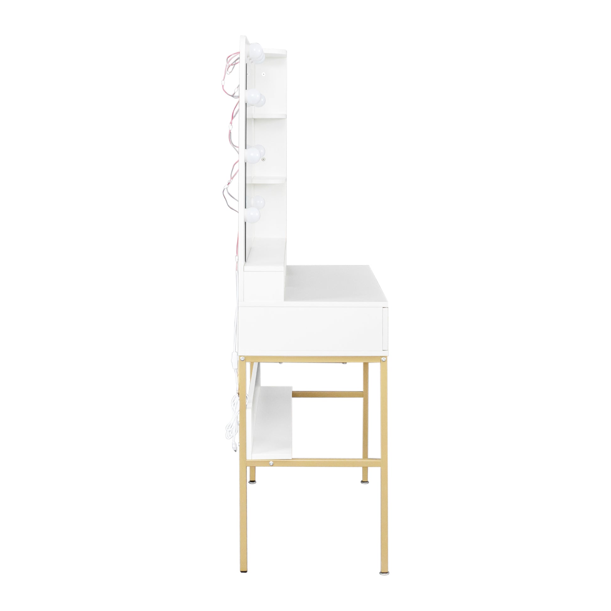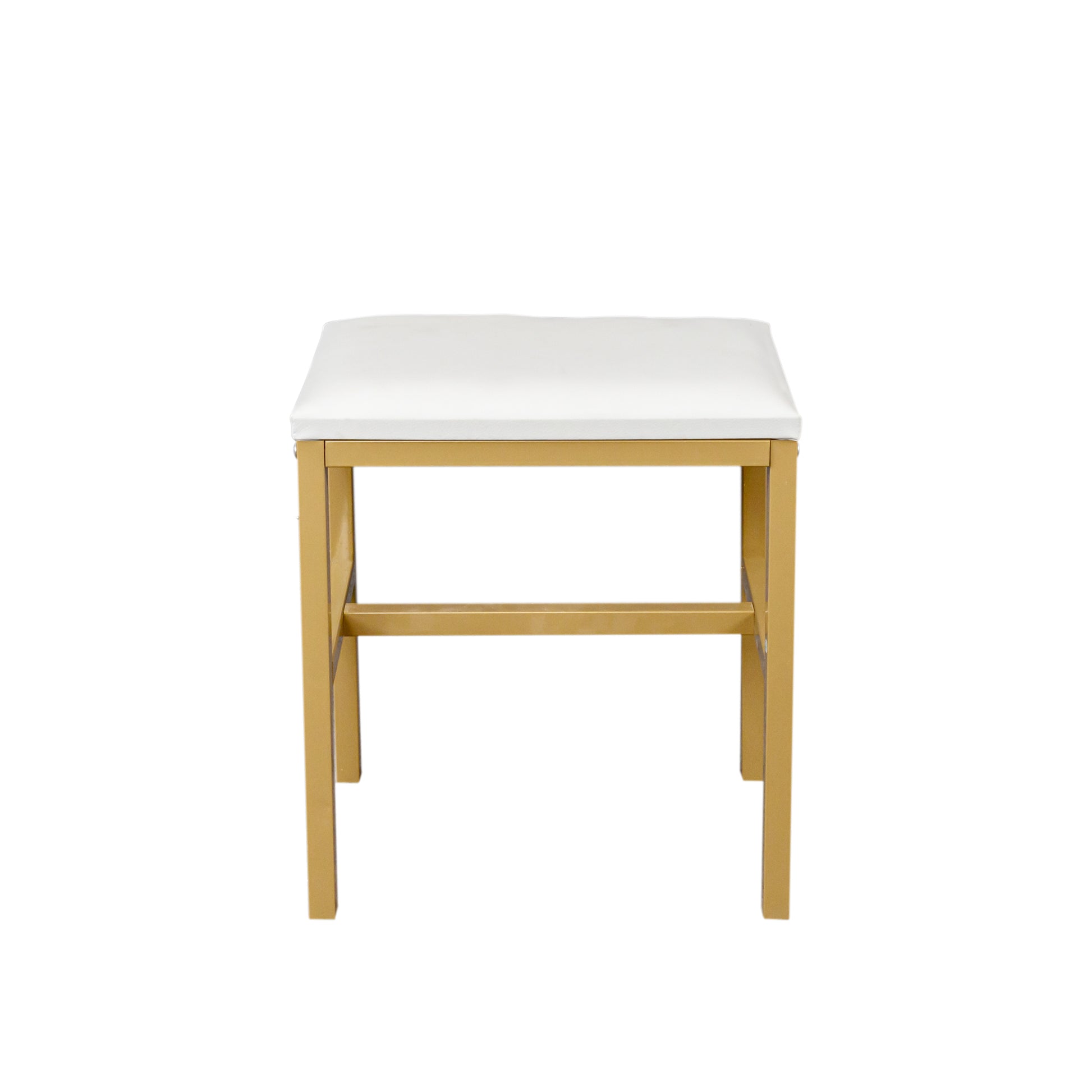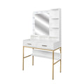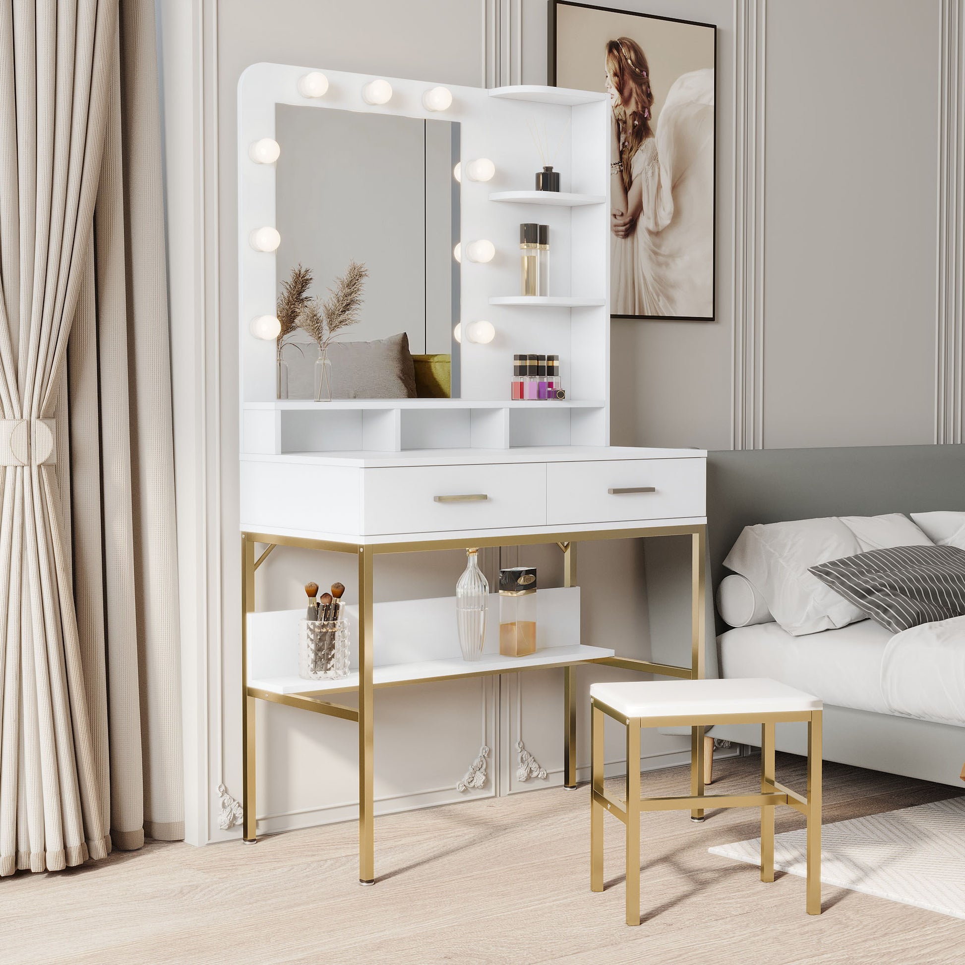 White Modern Simple Vanity With Stool, Solid Metal Frame Construction, 9 Led Lights Illuminate Makeup Mirror, Adjustable Brightness White Particle Board Mdf