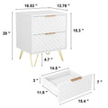 White Nightstand,Luxury Carving Board 2 Drawer Night Stand Bed Side Table With Metal Legs, 20" Tall Wood Black Night For Bedroom, Living Room, Lounge 1 Pack White 2 Drawers Bedroom American Design,American Traditional Particle Board Particle Board