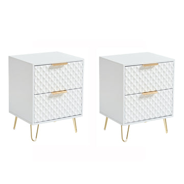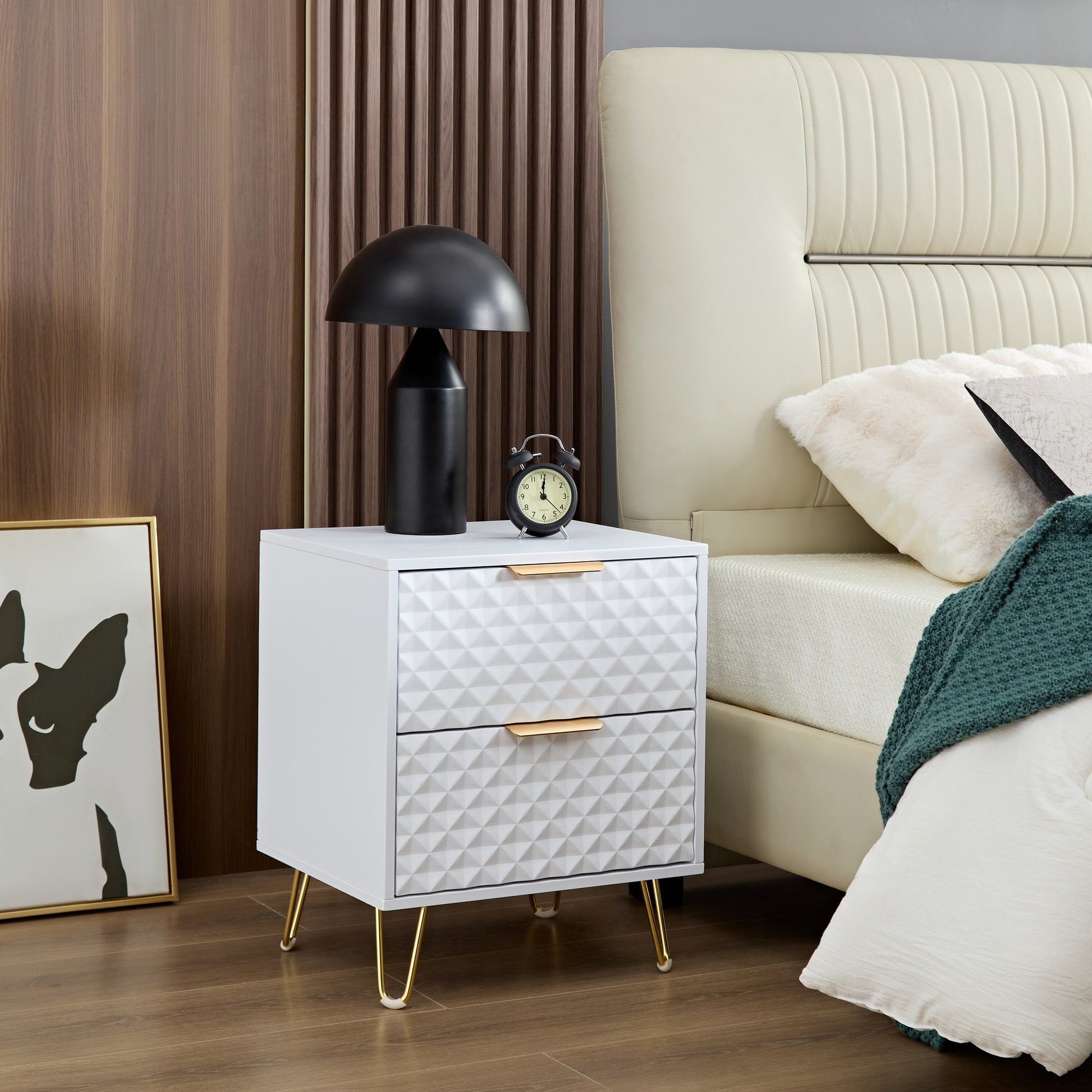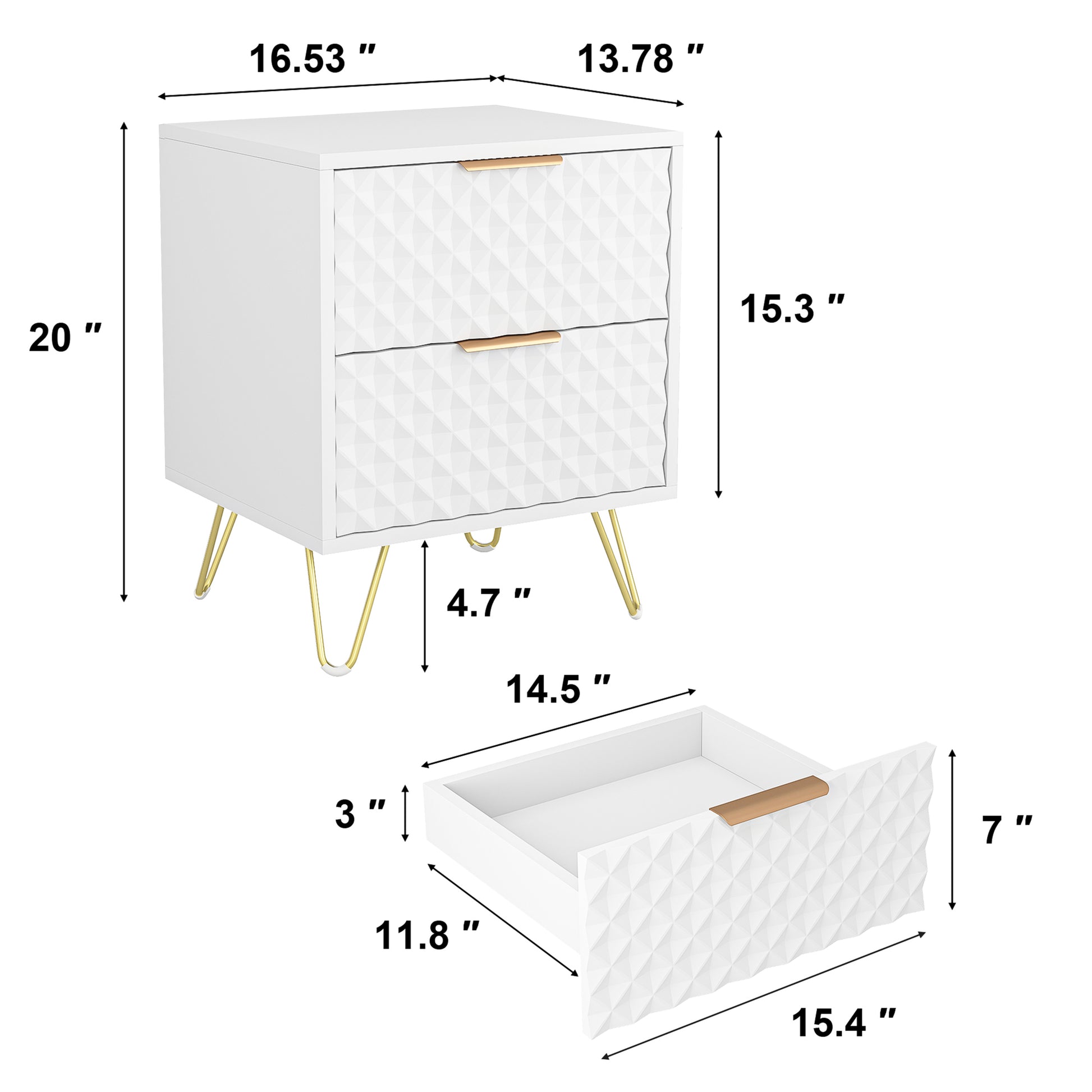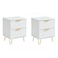 White Nightstand Set Of 2, End Side Table Double, Bedside Table With 2 Drawers, Dual Night Stand Metal Legs For Bedroom Living Room White 2 Drawers Bedroom American Design,American Traditional Particle Board Particle Board