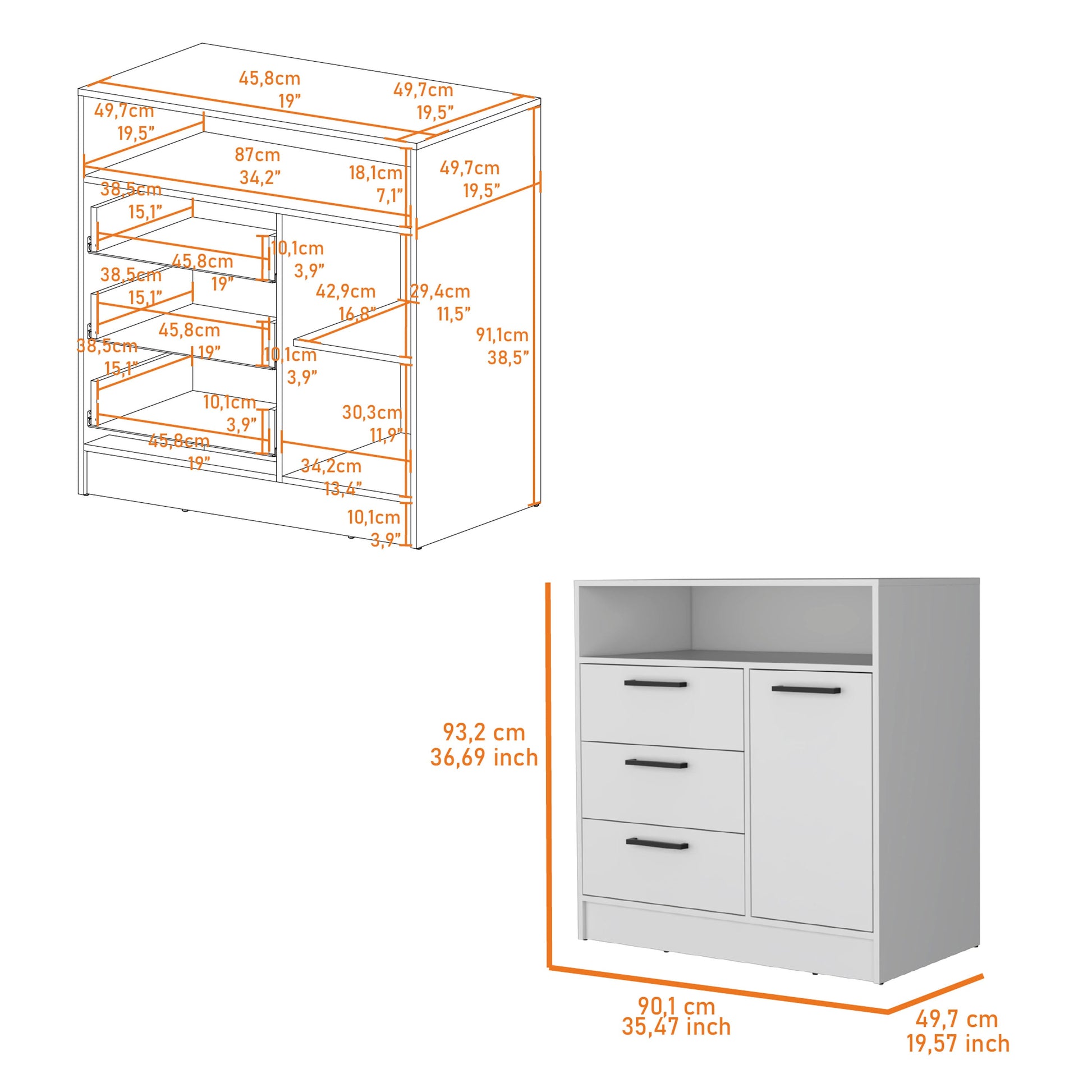 White Open Storage Shelf 3 Drawer Dresser White White Bedroom Wood