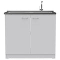 White Rectangle 2 Door Utility Sink And Cabinet White Particle Board