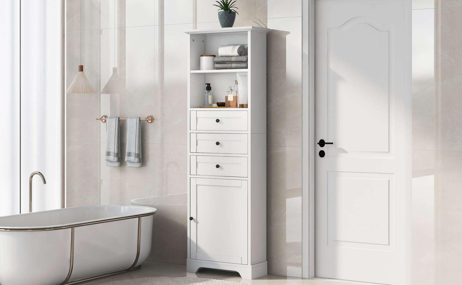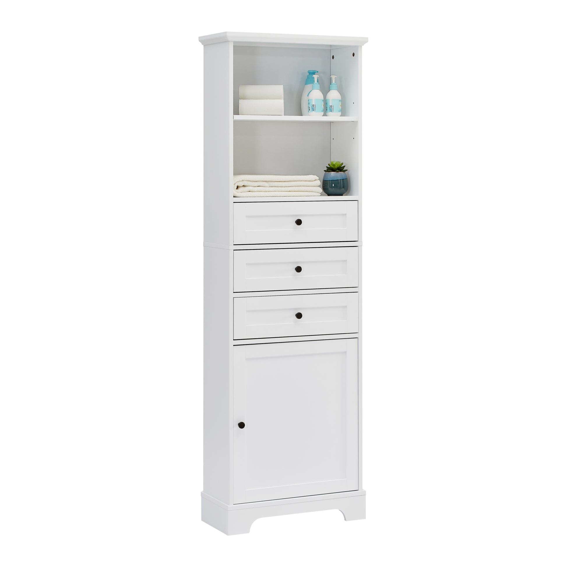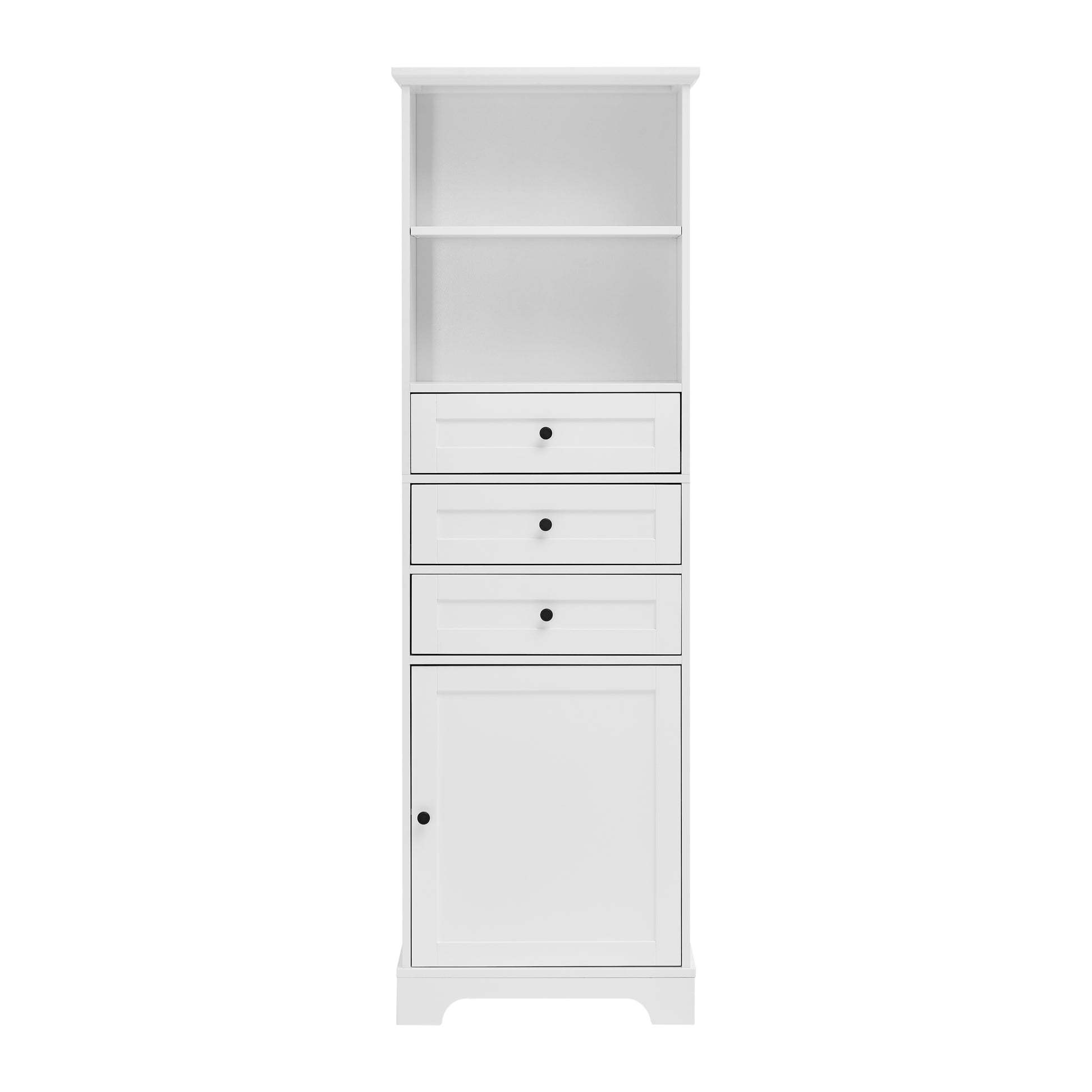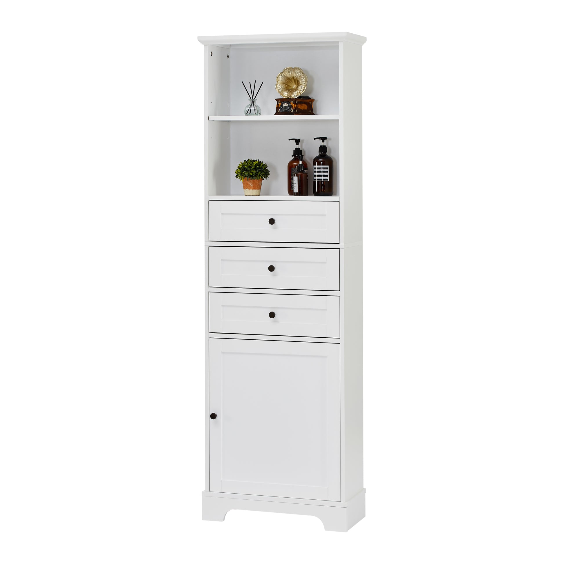 White Tall Storage Cabinet With 3 Drawers And Adjustable Shelves For Bathroom, Kitchen And Living Room, Mdf Board With Painted Finish White Mdf