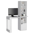 White Writing Computer Desk With Storage Cabinet And Bookcase With 4 Shevels, For Small And Big Spaces. White Particle Board Particle Board