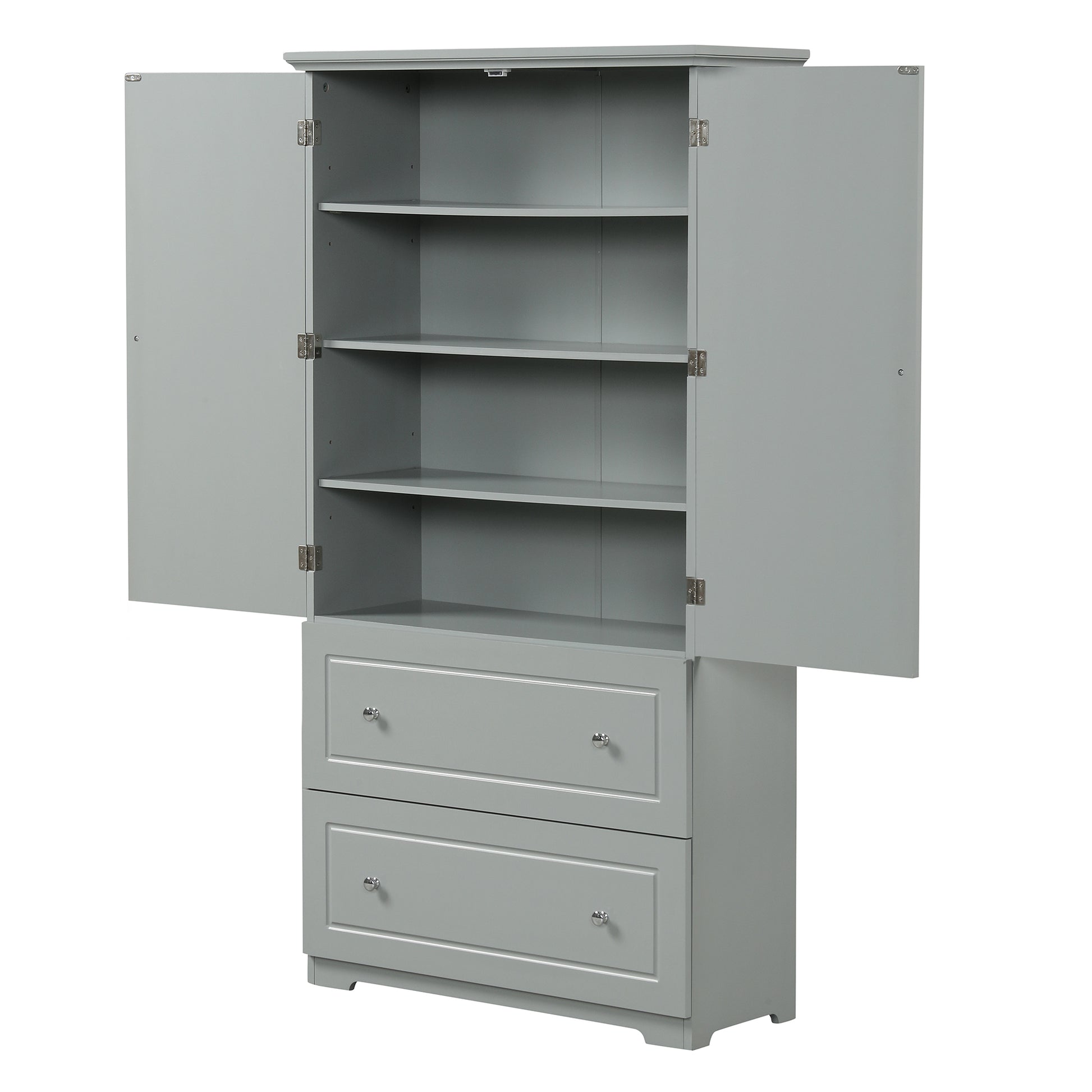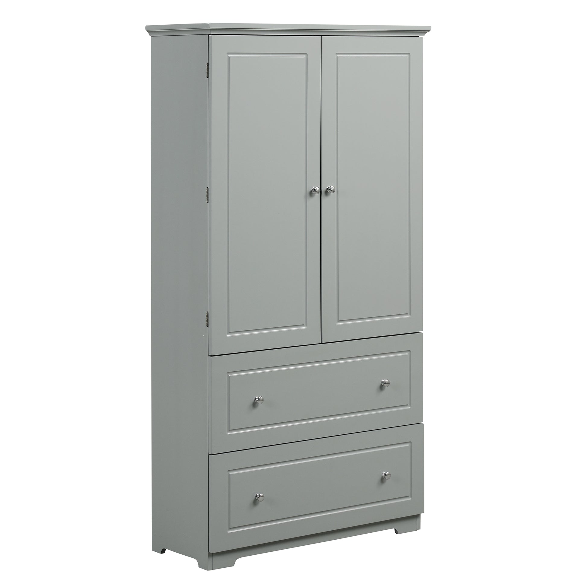 Wide Bathroom Storage Cabinet, Freestanding Storage Cabinet With Two Drawers And Adjustable Shelf, Mdf Board With Painted Finish, Grey Grey Mdf