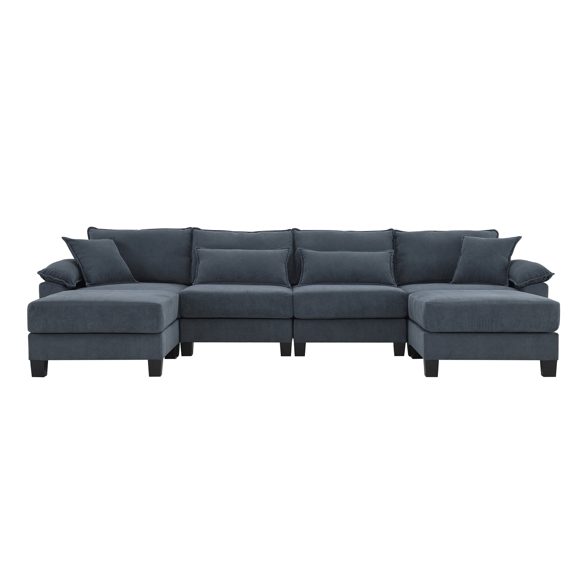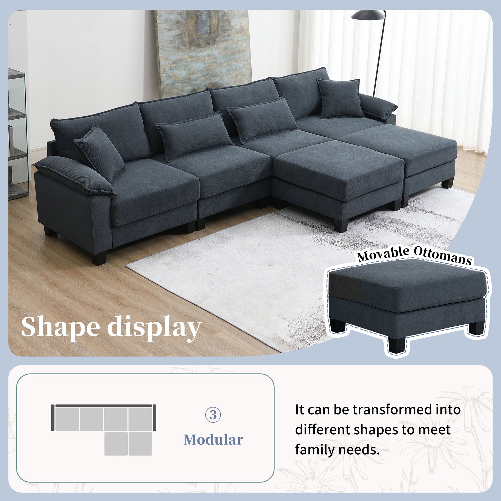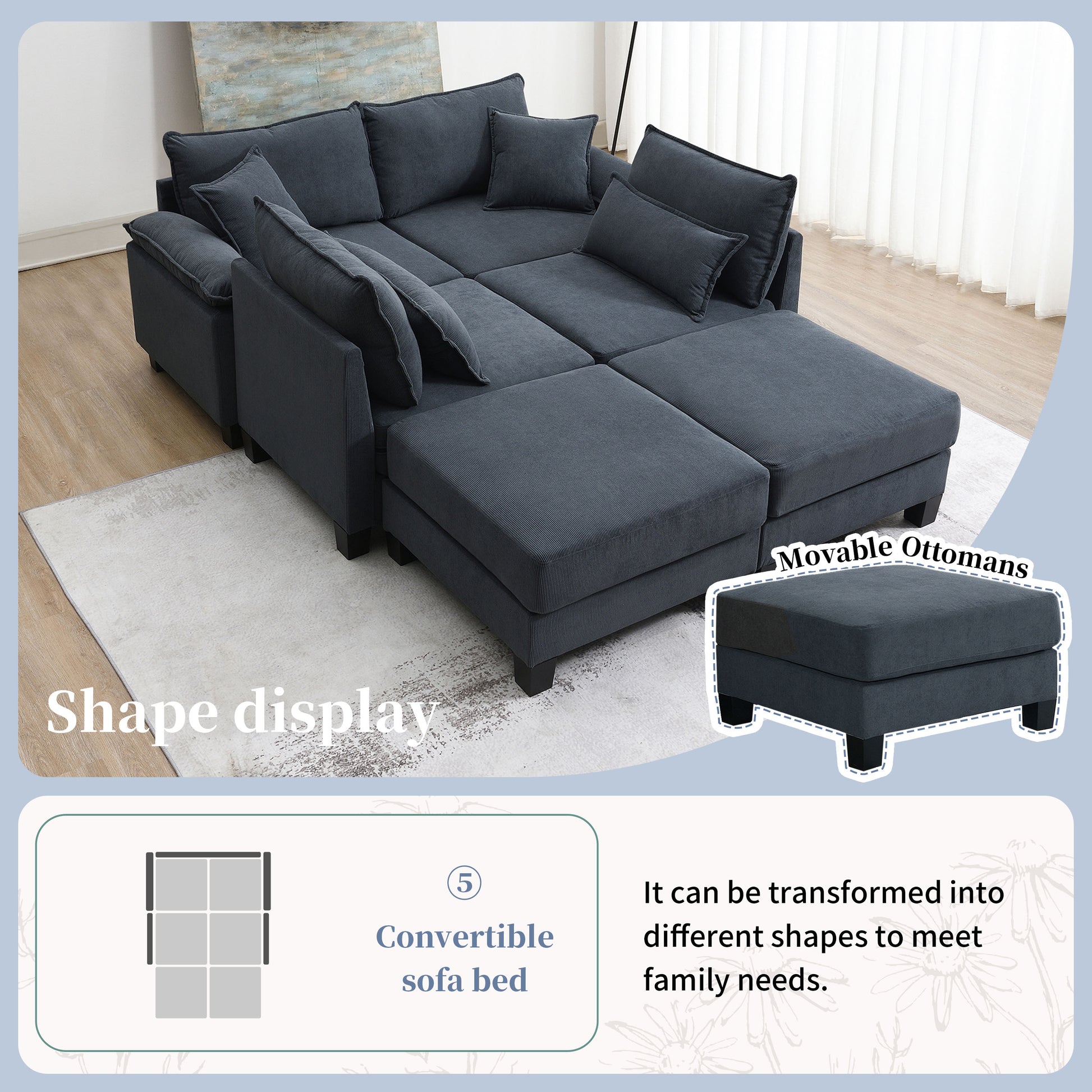 Wide Seat Corduroy Modular Sectional Sofa Bed,Sleeper Couch Set With Armrest Pillow,6 Seat Free Combination Sofa With Ottomans,Oversized Indoor Furniture For Living Room, 2 Colors Gray Corduroy 6