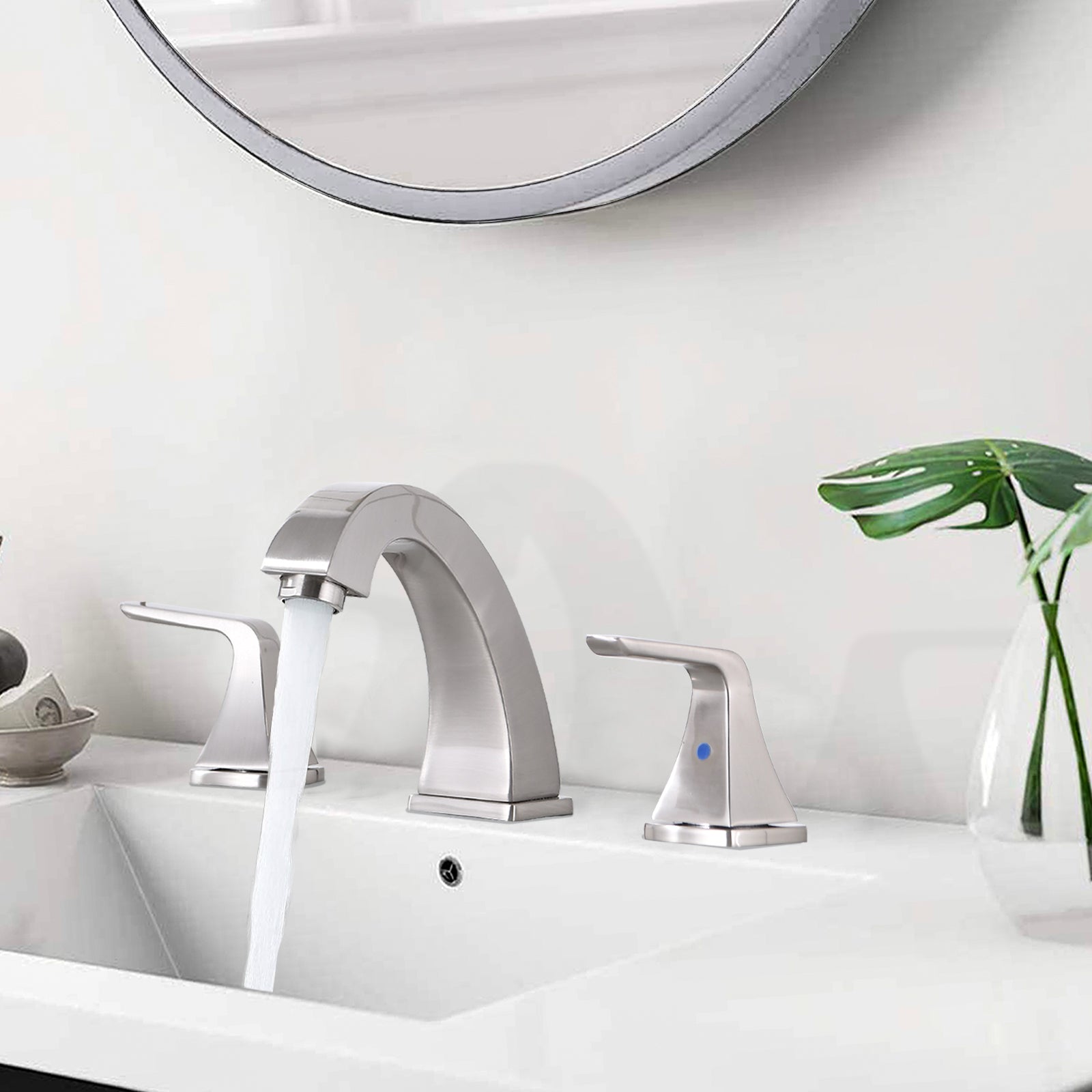 Widespread 2 Handles Bathroom Faucet With Pop Up Sink Drain Brushed Nickel Metal