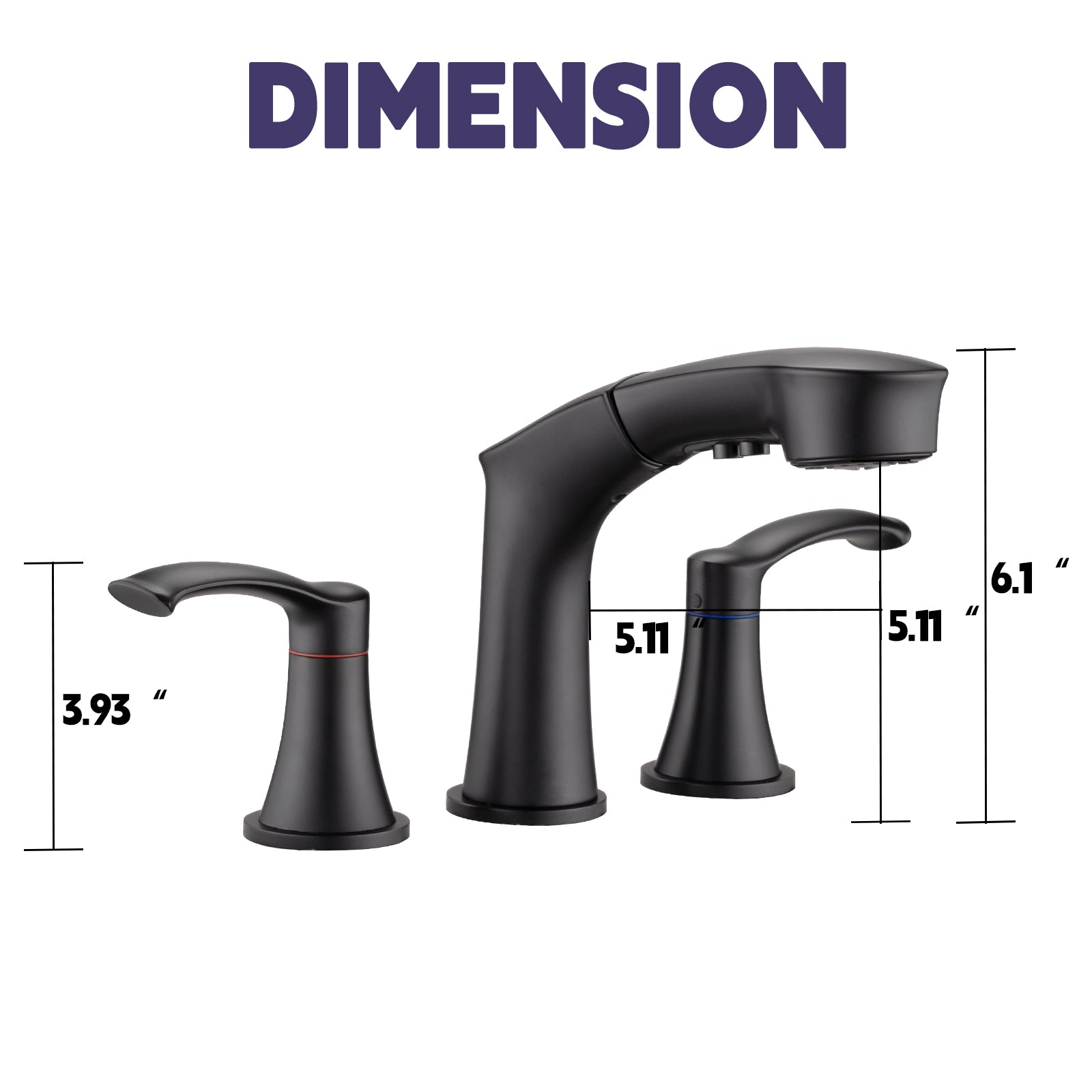 Widespread Pull Out Sprayer Bathroom Faucet, 2 Handle Bathroom Sink Faucet Two Matte Black Pull Out Deck Mounted Widespread Faucets Matte Black Stainless Steel