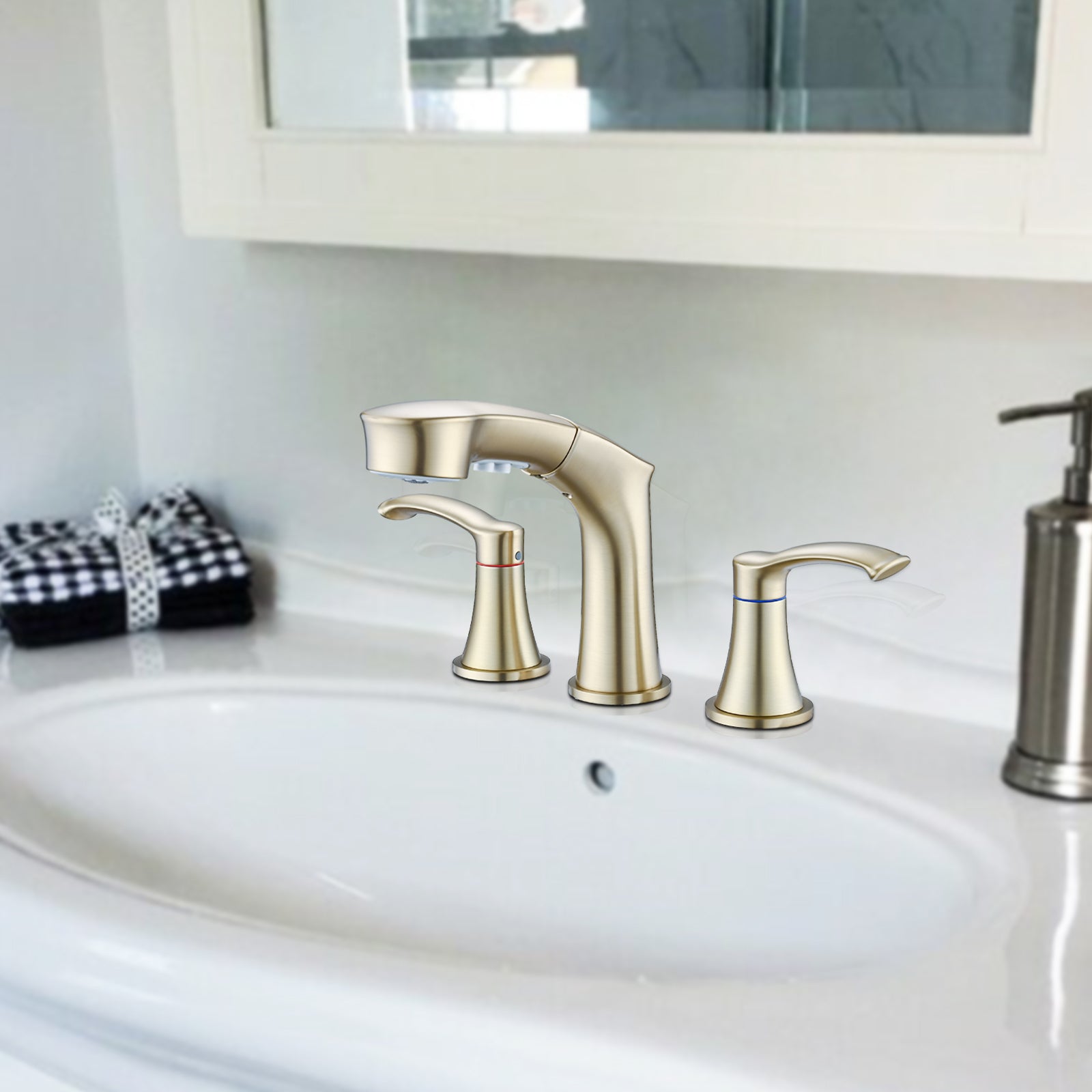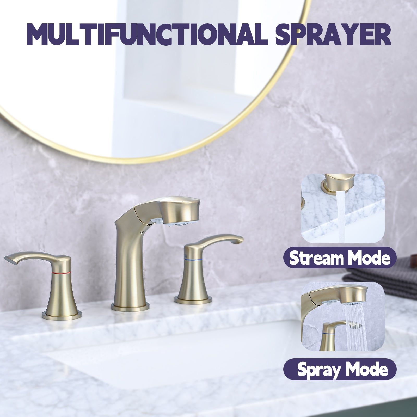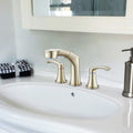 Widespread Pull Out Sprayer Bathroom Faucet, 2 Handle Bathroom Sink Faucet Two Brushed Gold Pull Out Deck Mounted Widespread Faucets Gold Stainless Steel