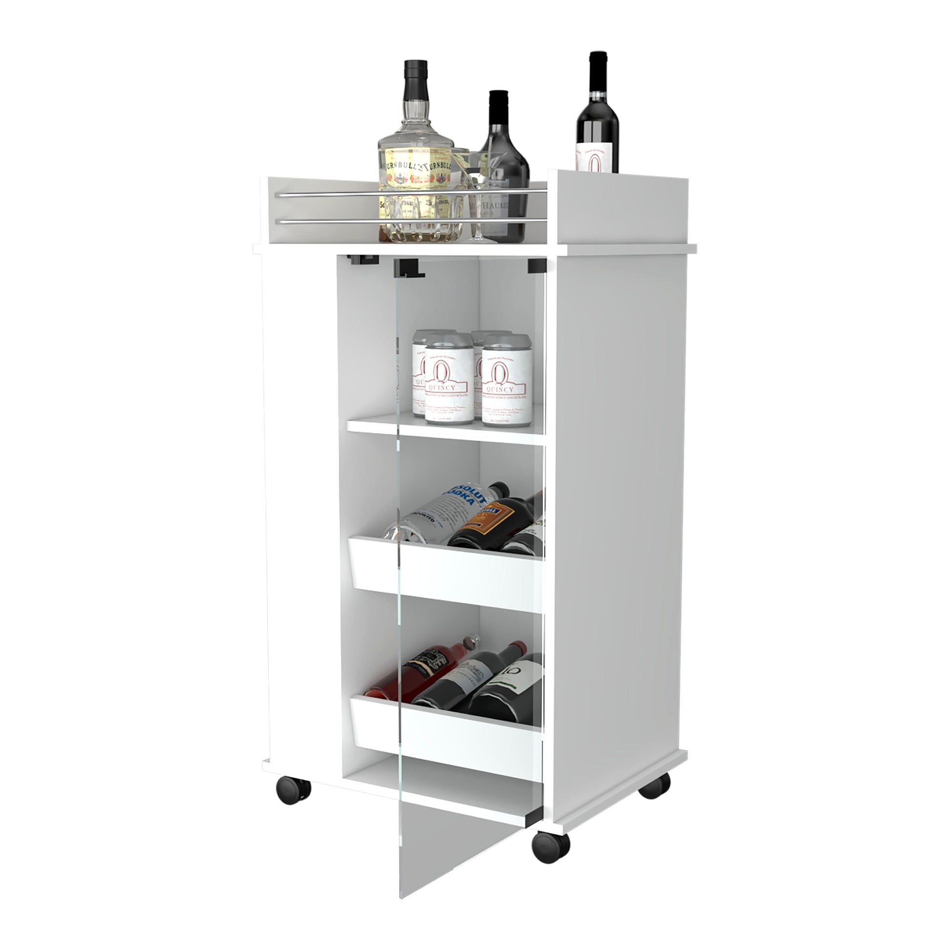 Willow Park Glass Door Bar Cart With Bottle Holder And Casters White White Engineered Wood