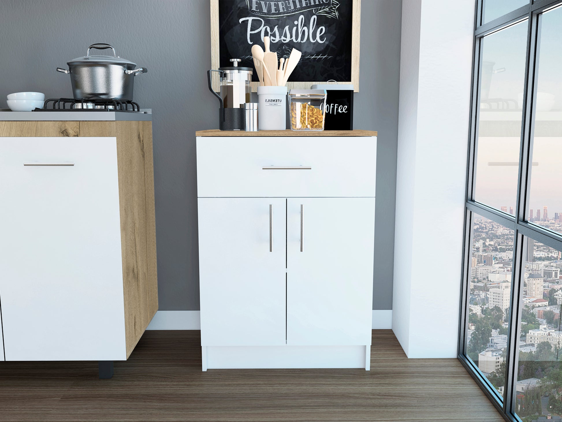 Wilmington 1 Drawer Rectangle Pantry Cabinet White And Light Oak White Particle Board
