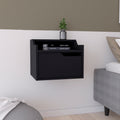 Winchester Floating Nightstand, Modern Dual Tier Design With Spacious Single Drawer Storage, Black Black Solid Wood Mdf Engineered Wood