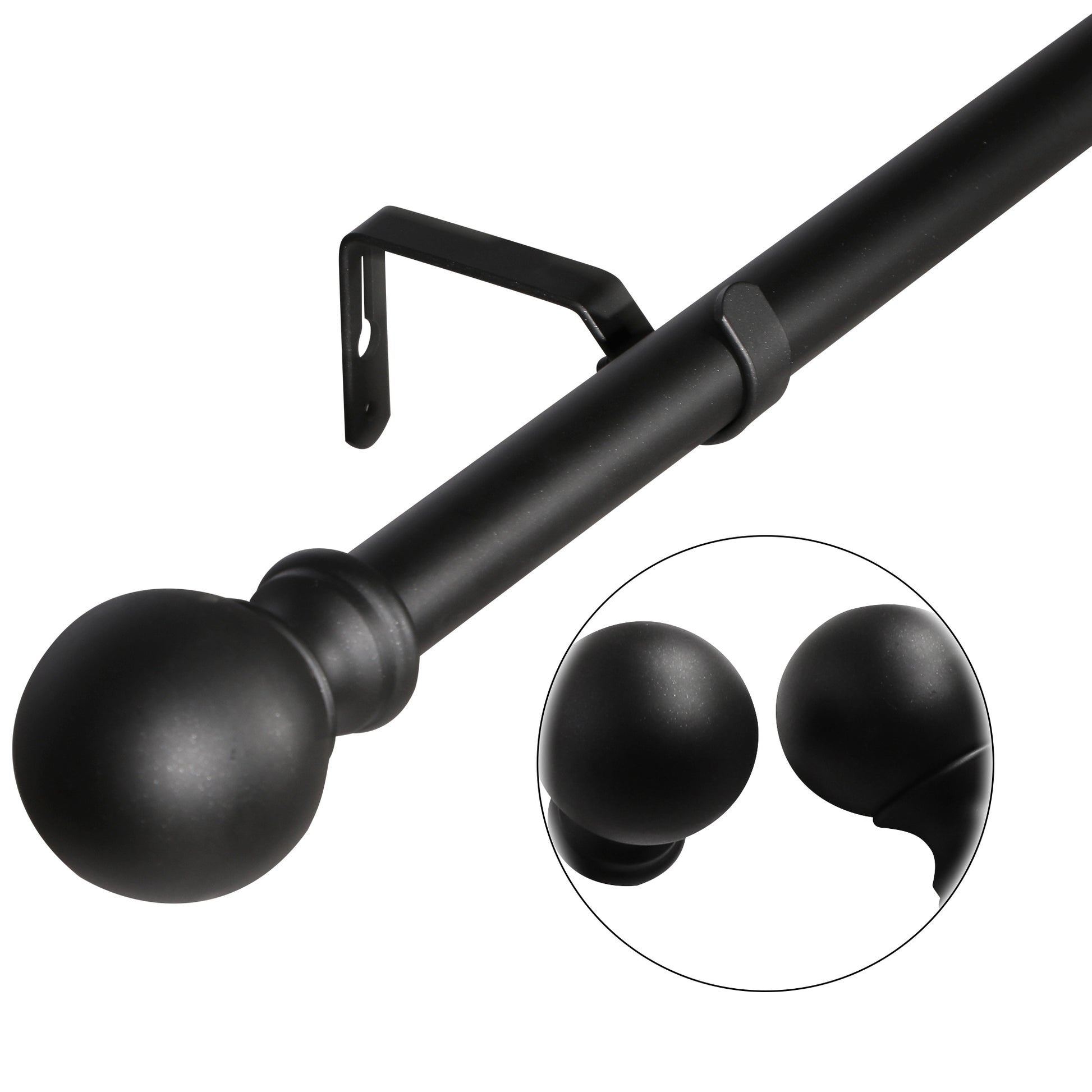 Window Single Curtain Rod Adjustable Sizes: 28" 48", Black Matte Black Metal