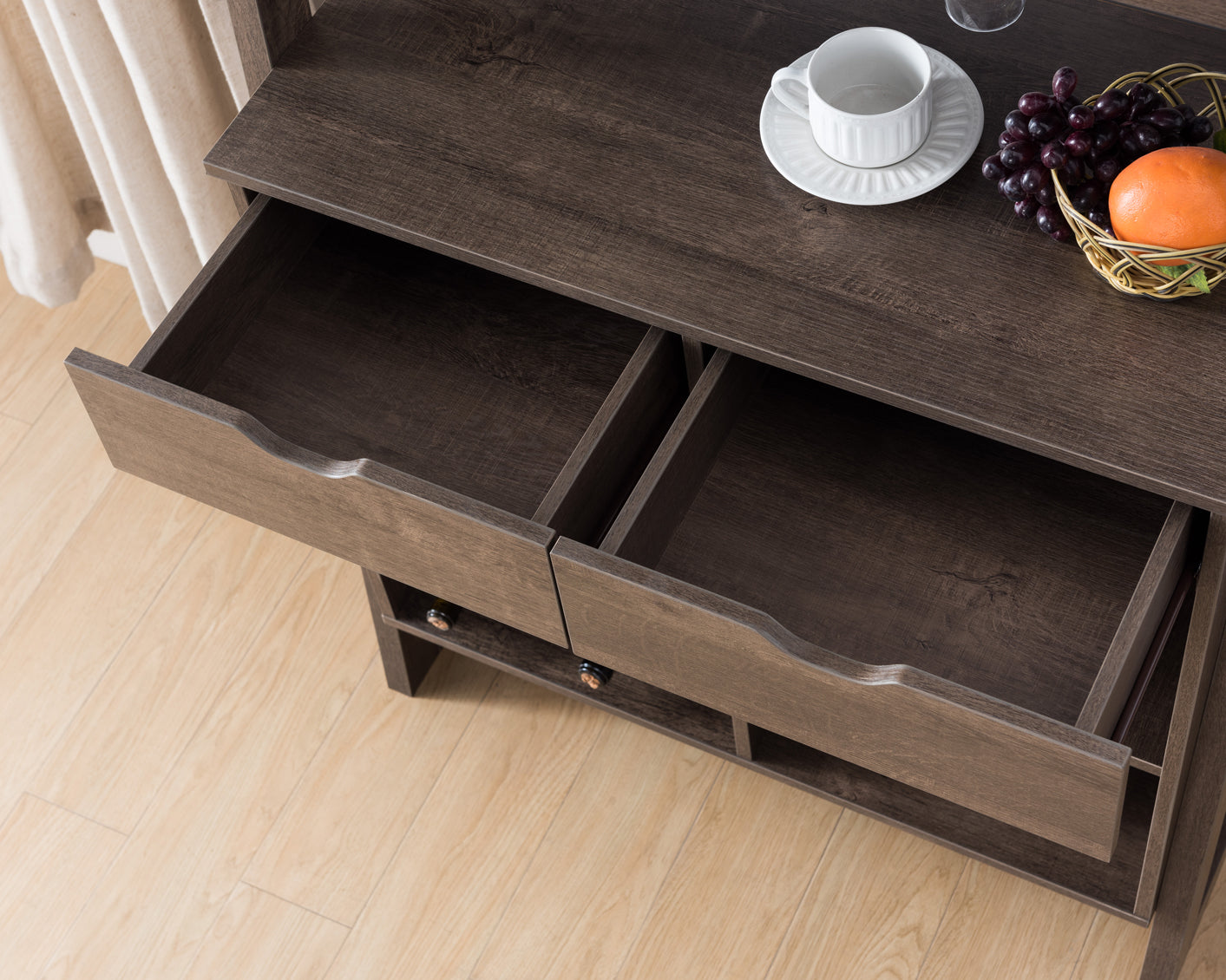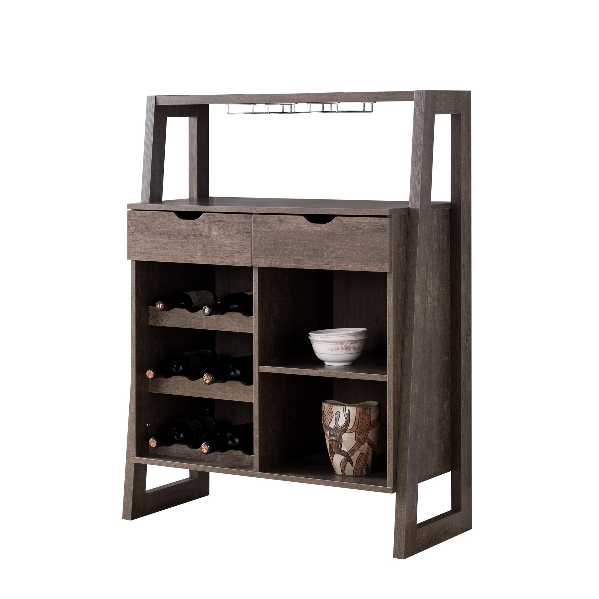 Wine Display Cabinet, Wine Rack With Multi Storage &Three Wine Bottle Compartments In Walnut Oak Grey Particle Board
