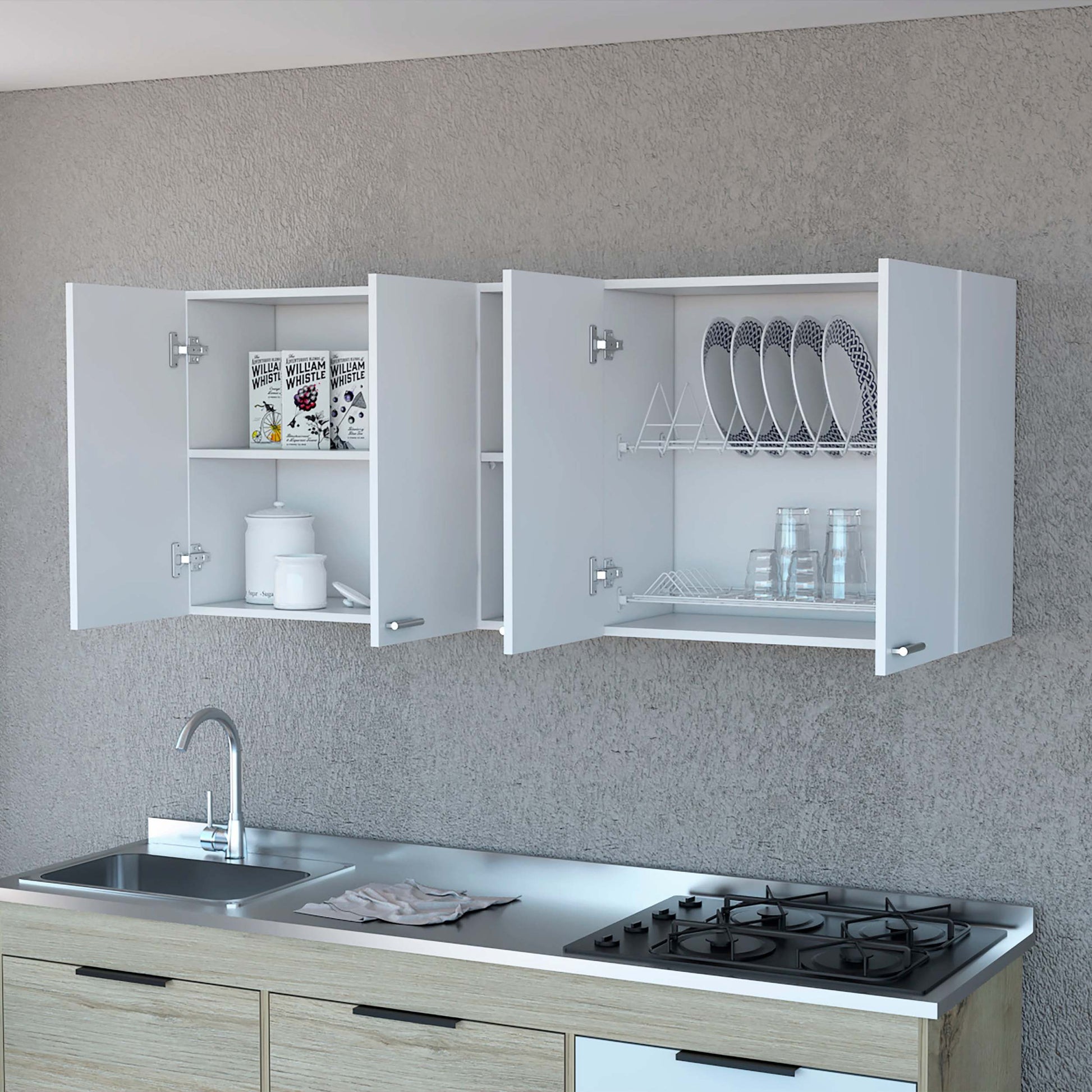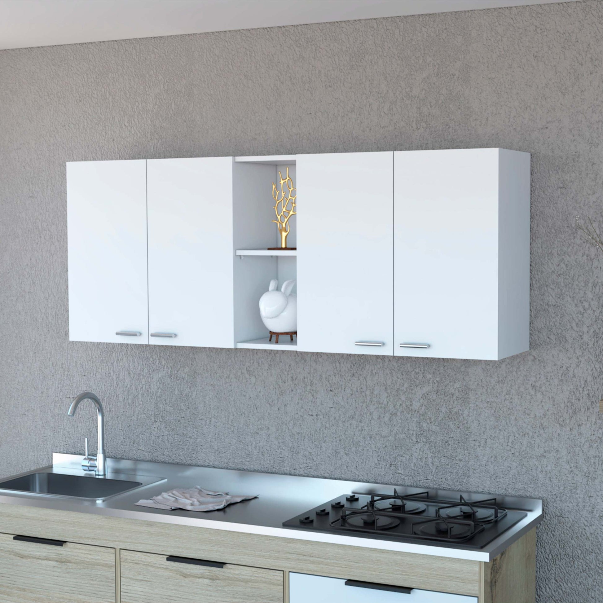Winslow 150" Wall Cabinet, Four Doors, Two Divisions, Two Shelves White Mdf Engineered Wood