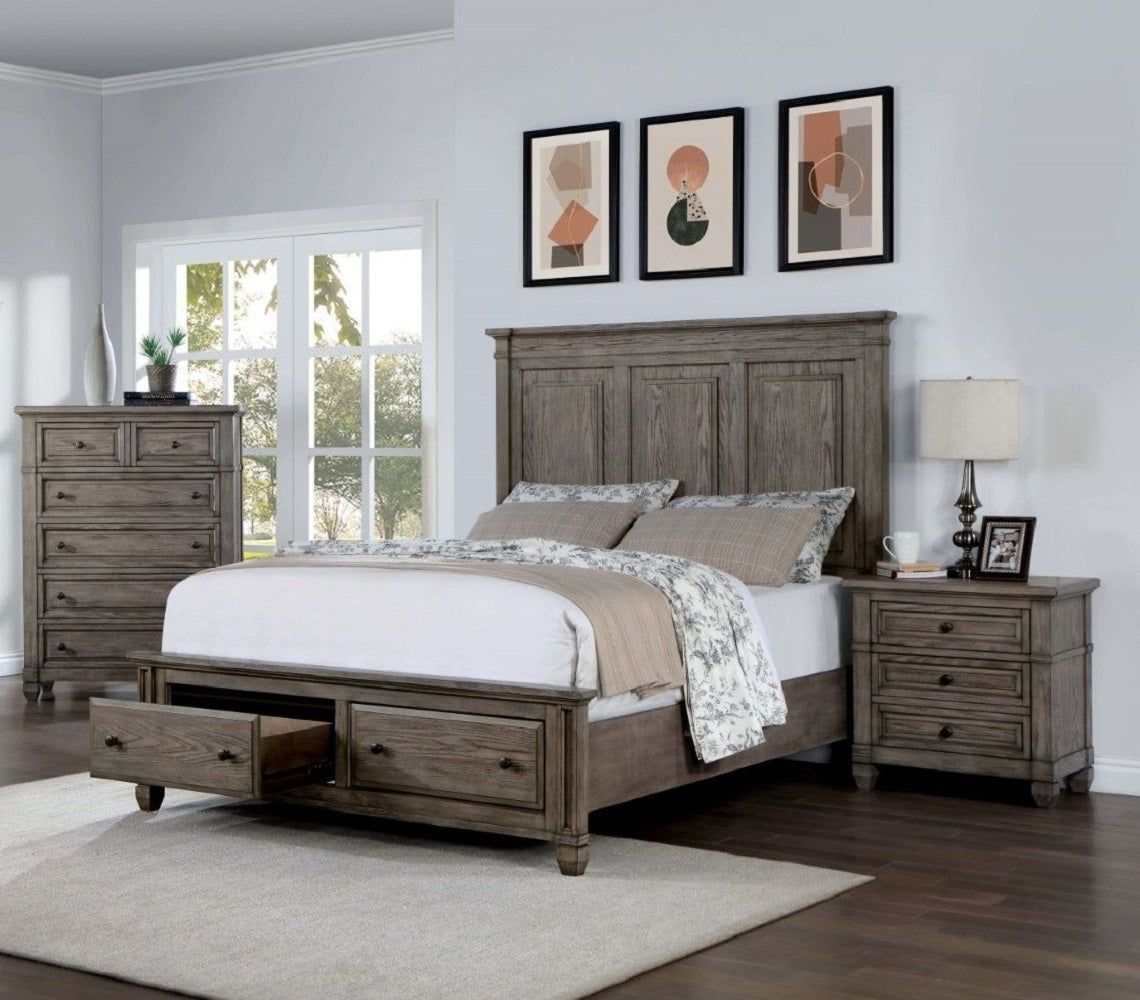 Visually appealing with its intricate molding, this wooden collection is the perfect focal point for any transitional space. Every groove and detail of the beautifully wire-brushed wood is reflected on the matching case goods--their drawers made of dovetail construction and features ball bearing mechanism for smooth operation. Bottom drawers are also made of cedar wood to discourage pests and insects. Of note is the nightstand which features a hidden drawer and a Usb port for overnight charging.