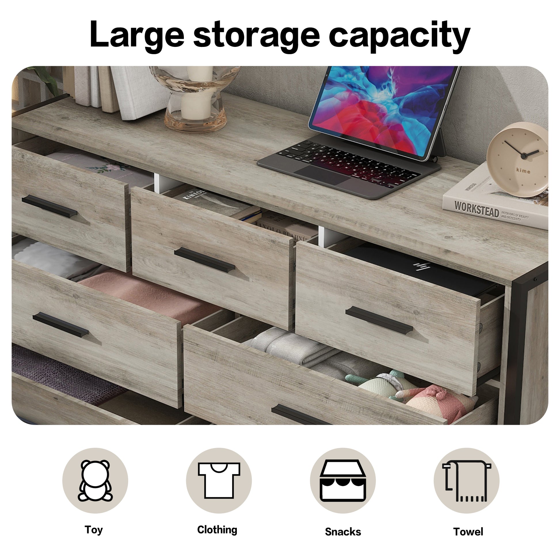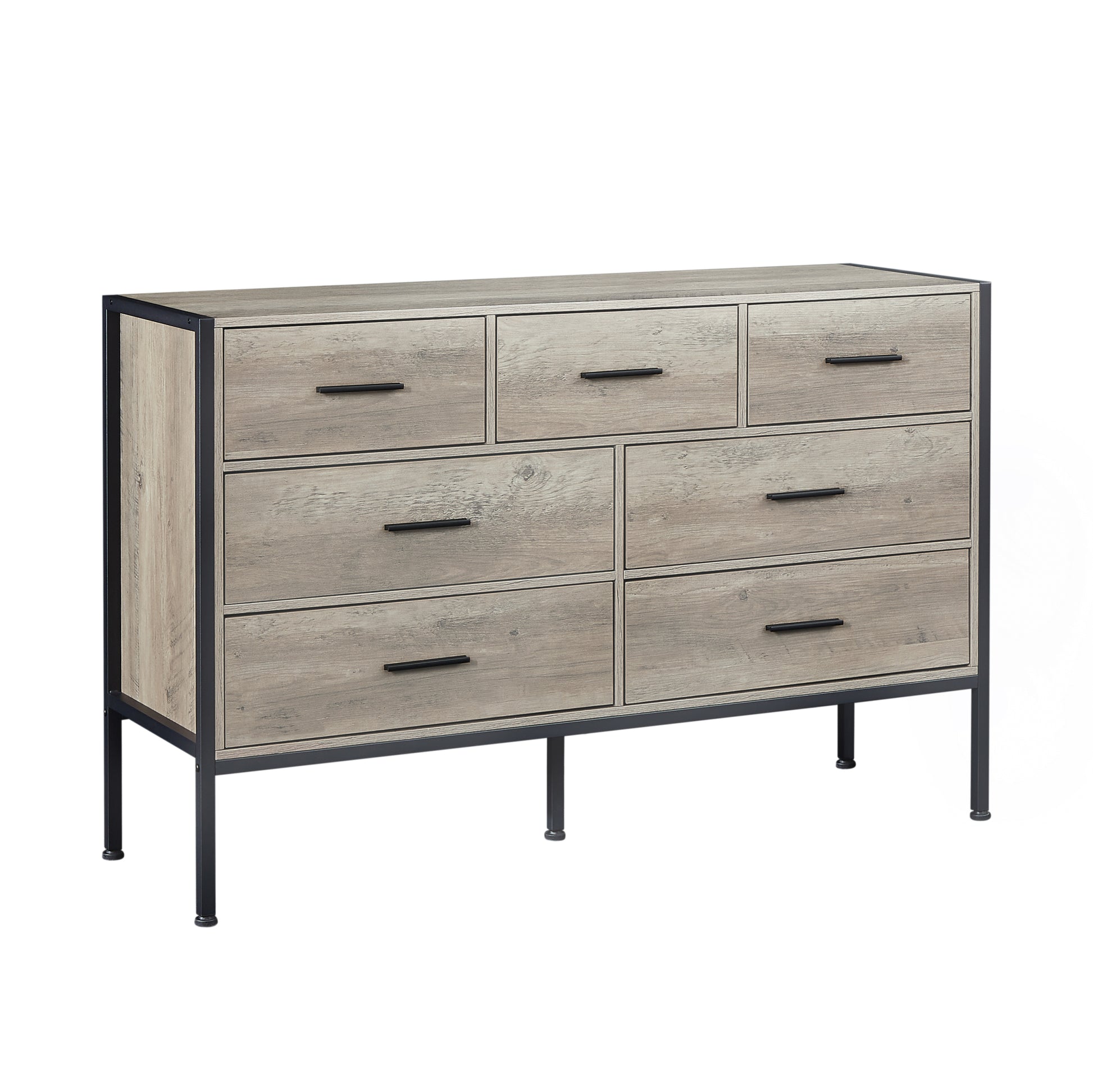 Wood Dresser With 7 Drawers, Wooden Storage Closet For Bedroom, Solid Clothes Cabinet With Sturdy Steel Frame, 48.58"W 15.75"D 31.22"H, 48 Inch, Rustic Grey Gray Gray Primary Living Space Luxury,Retro,Rustic,Vintage Particle Board