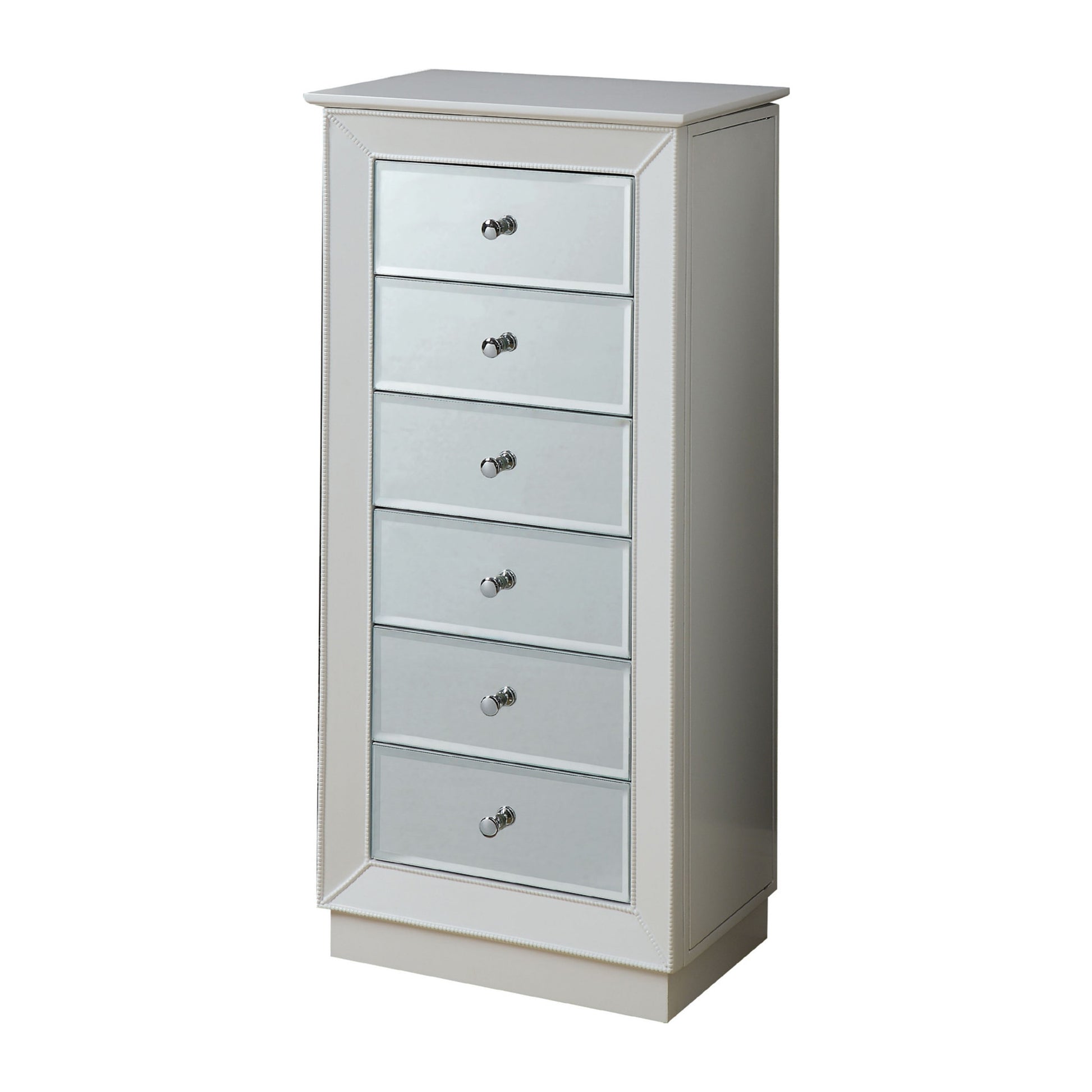 Wood Jewelry Armoire Having 6 Drawers With Mirror Front, White White Wood