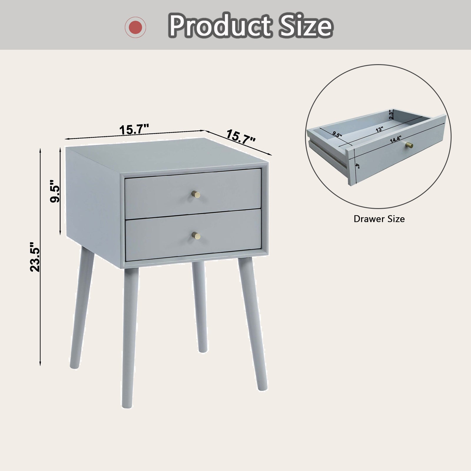 Wood Nightstand With 2 Drawers,Side Table Bedroom Storage Drawer Bedside End Table,Small Side End Table With Storage, Gray Gray 2 Drawers Rubber Wood