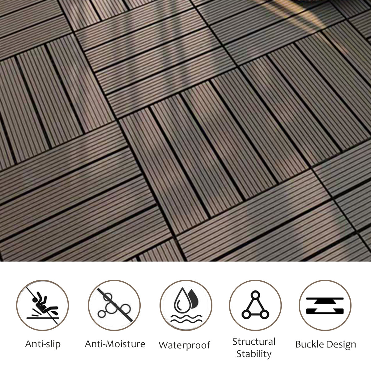 Wood Plastic Composite Deck Tiles Set Of 20Pcs, Composite Decking Resist Rust, Water, Weather, Indoor&Outdoor, Easy To Diy & Maintain, Ideal For Patios, Balconies, Rooftops, Decks, 12X12I Light Coffee Light Coffee Modern Plastic Wood Plastic