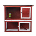 Wood Rabbit Hutch, Pet Playpen With 2 Stories, Ramp, Doors, Pull Out Tray, Water Bottle, Outdoor Enclosure For Small Animals Bunnies, Red And White Red Wood