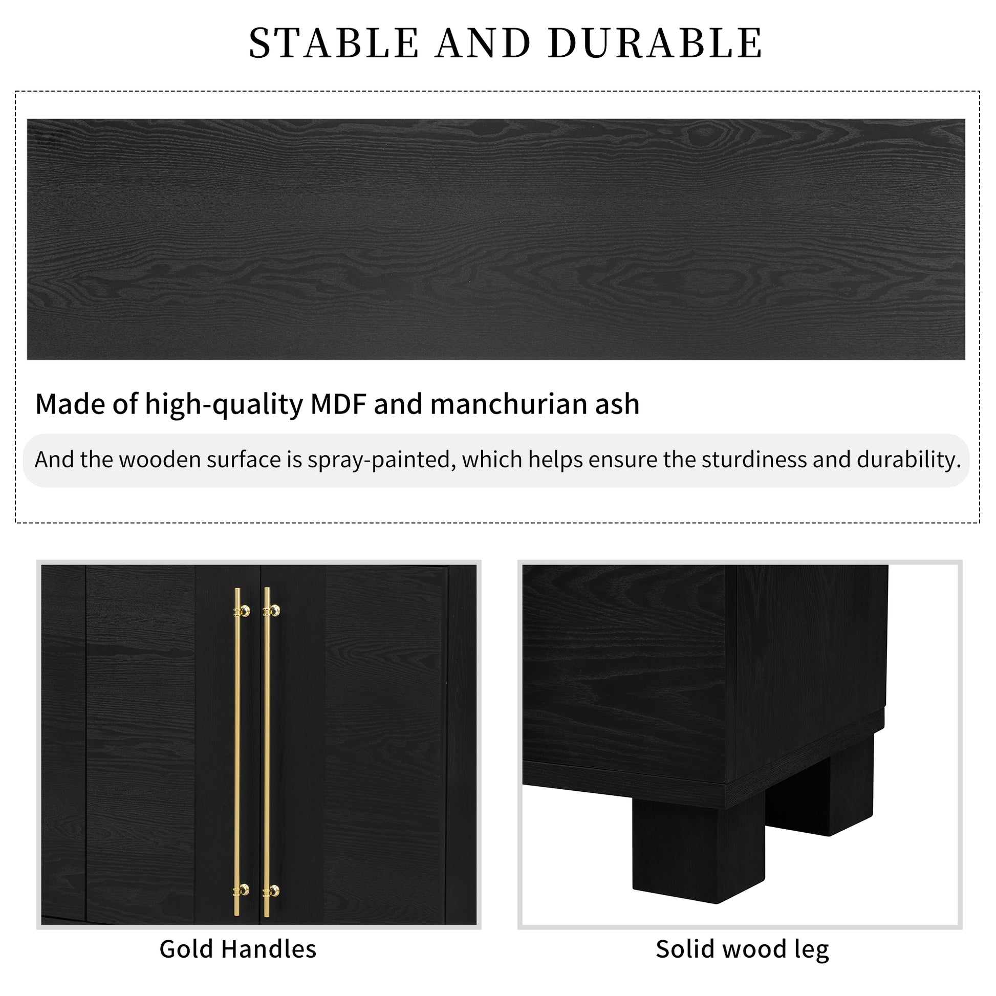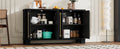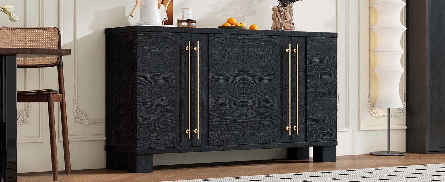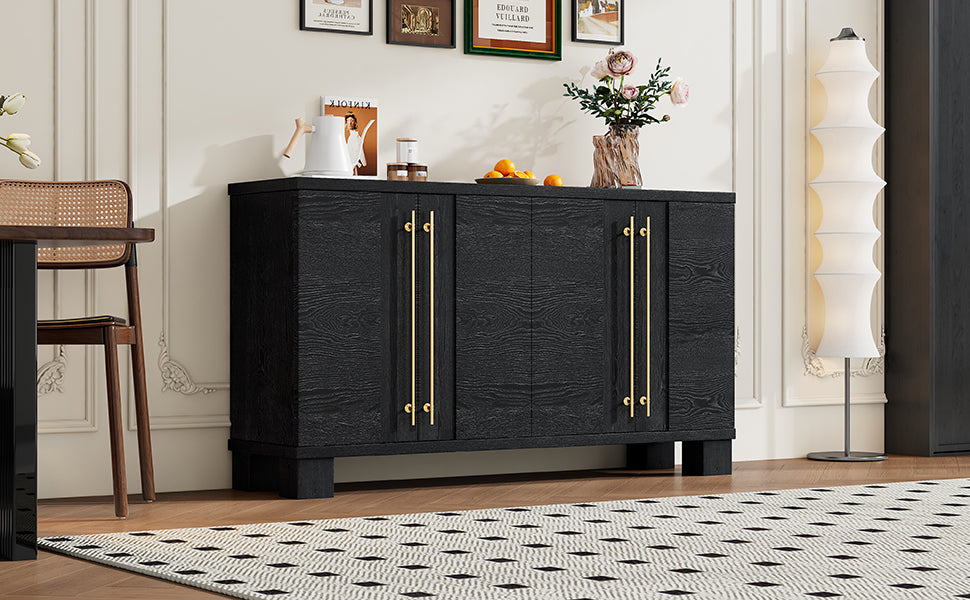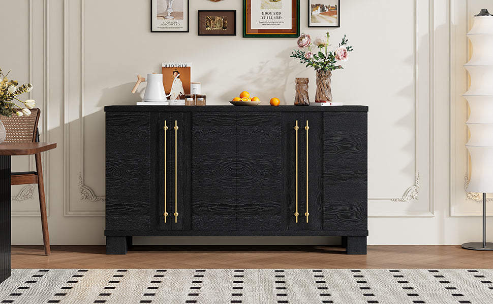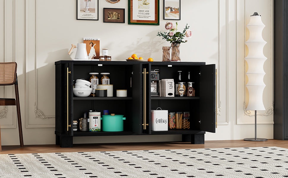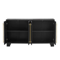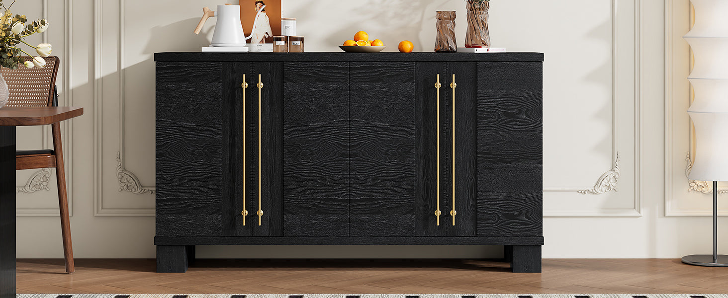 Wood Traditional Style Sideboard With Adjustable Shelves And Gold Handles For Kitchen, Dining Room And Living Room Black Black Mdf