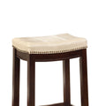 Wooden Bar Stool With Faux Leather Upholstery, Cream And Brown Cream Solid Wood
