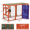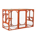 Wooden Cat House, Outdoor Cat Cage With Water Proof Asphalt Planks And Cat Perches, Orange Orange Wood Metal
