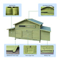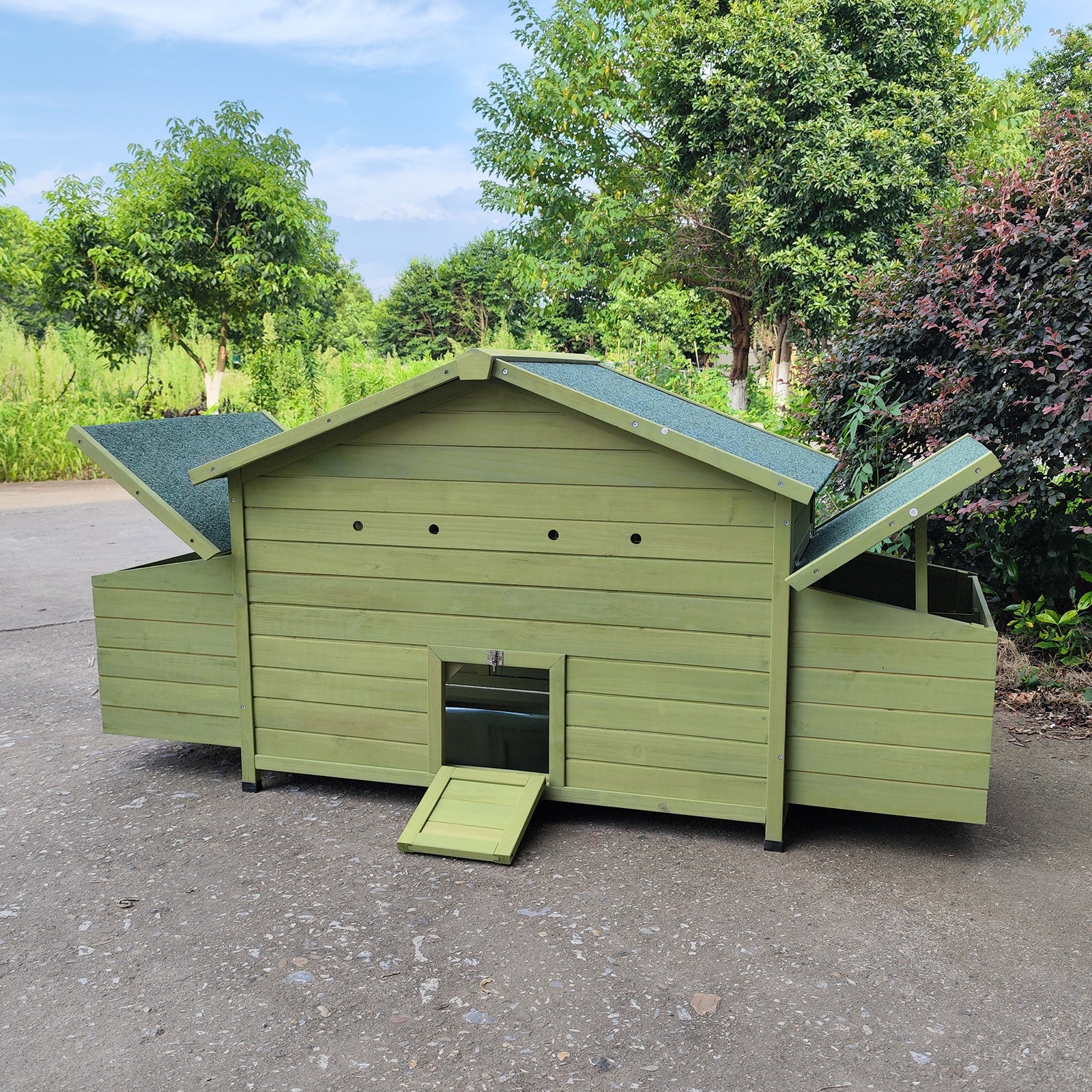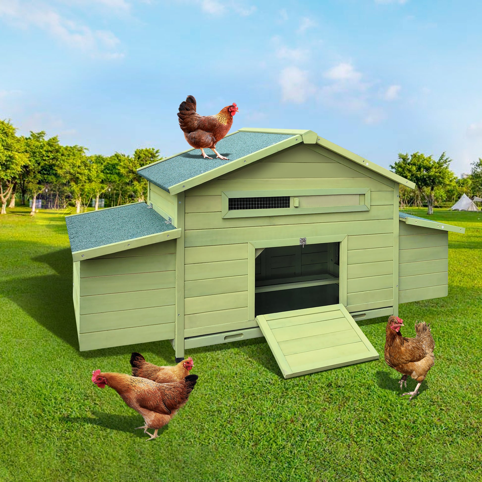 Wooden Chicken Coop Hen House Poultry Cage With 2 Sides Large Nesting Boxes,2 Free Range Doors Green Wood