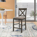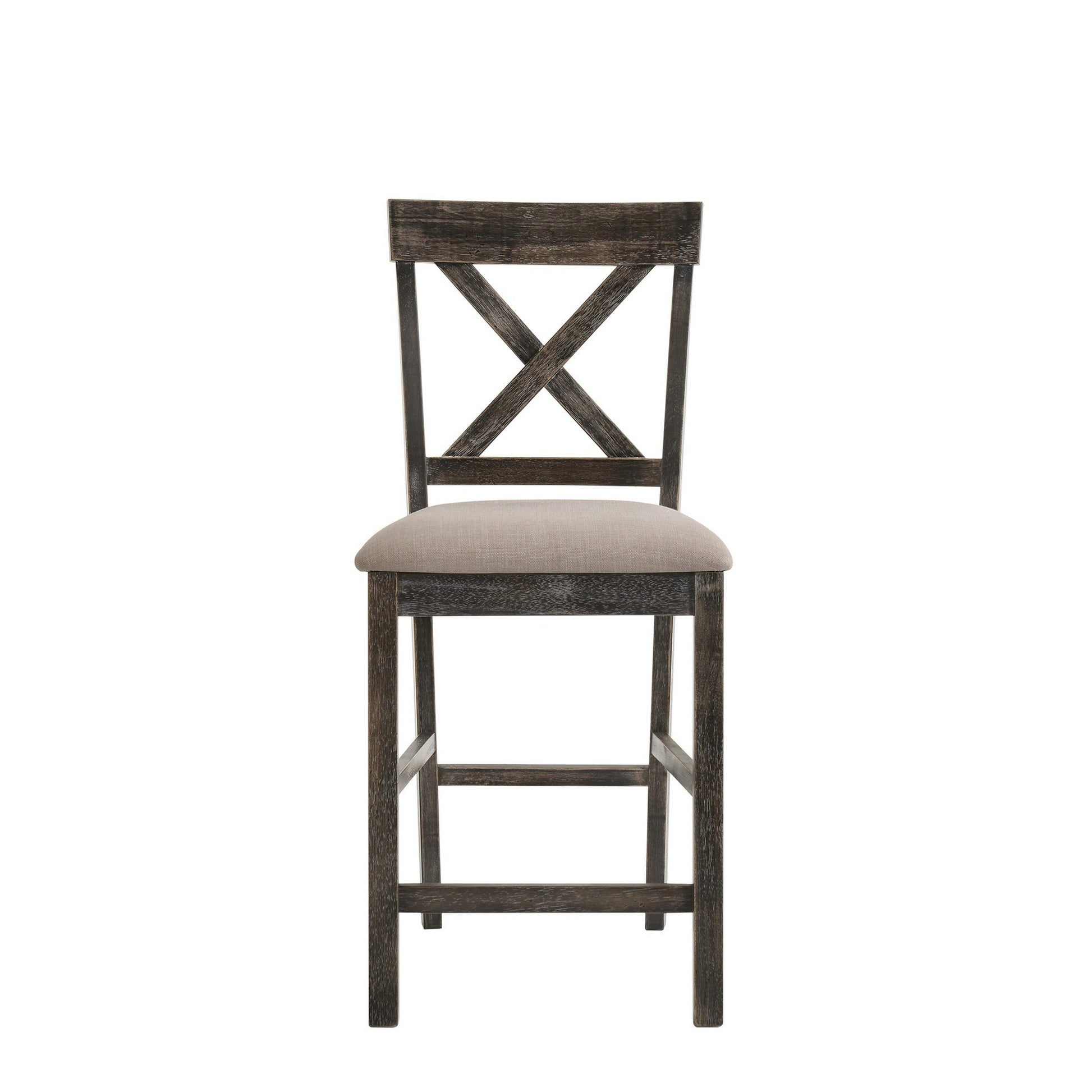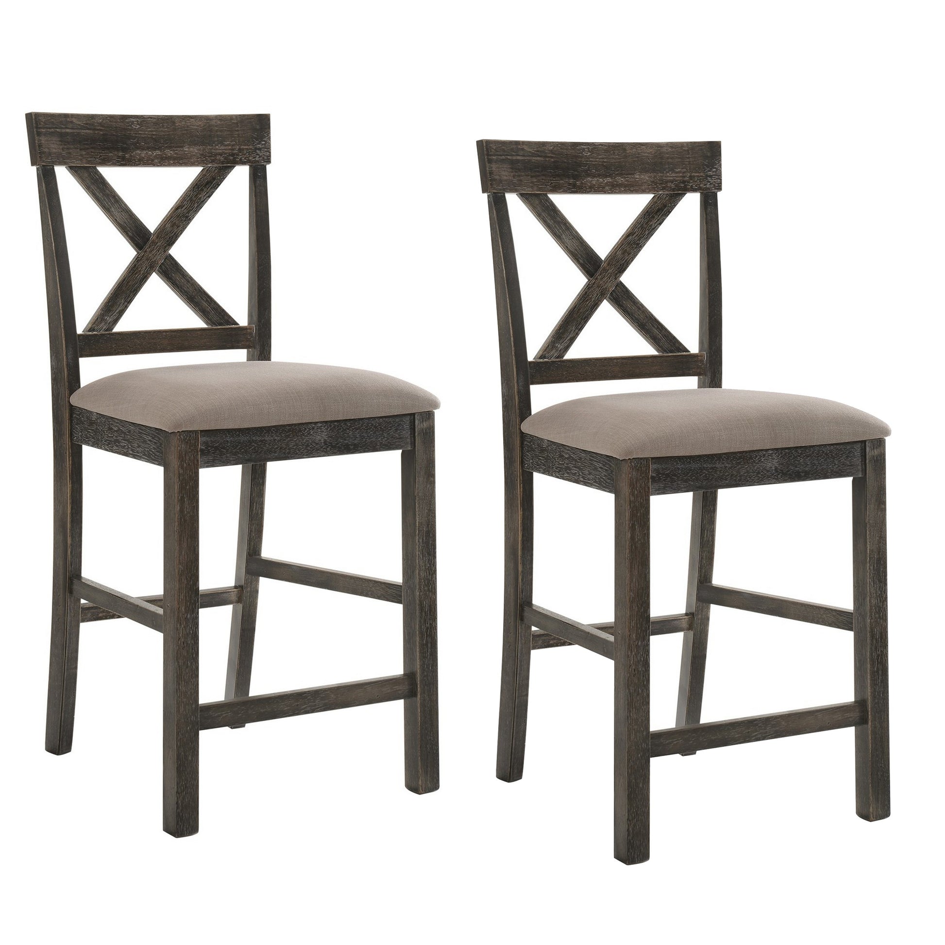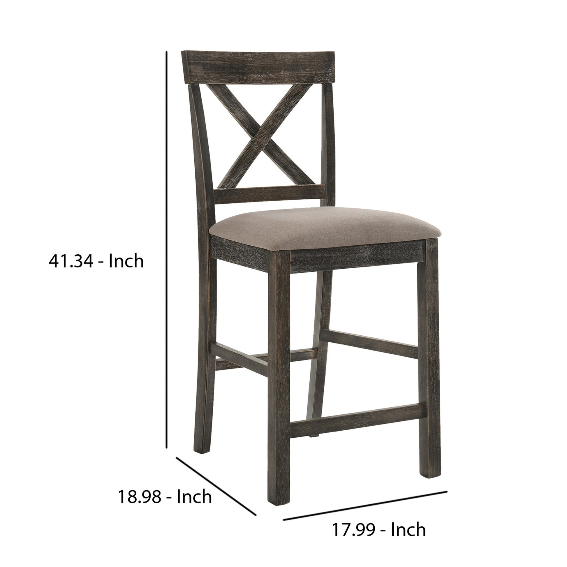 Wooden Counter Height Chair With X Shaped Backrest And Built In Footrest, Set Of 2, Gray Gray Wood