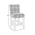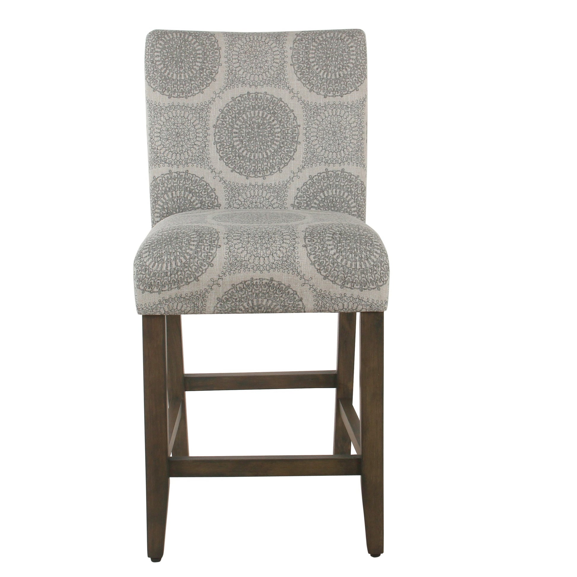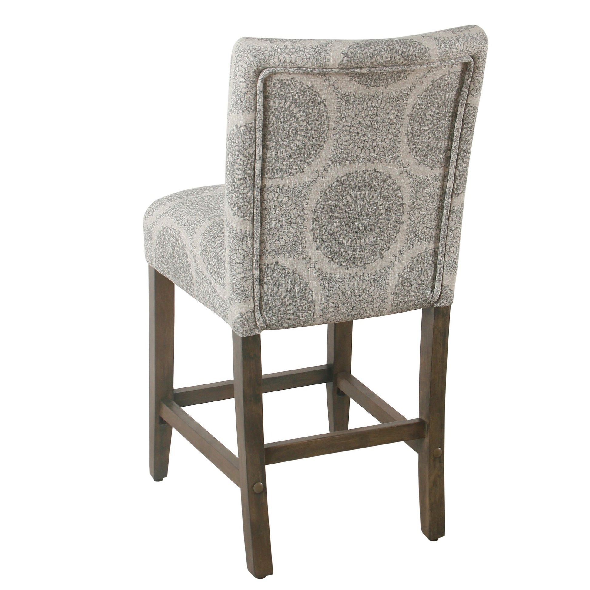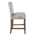Wooden Counter Height Stool With Medallion Pattern Fabric Upholstery, Gray Gray Wood Fabric