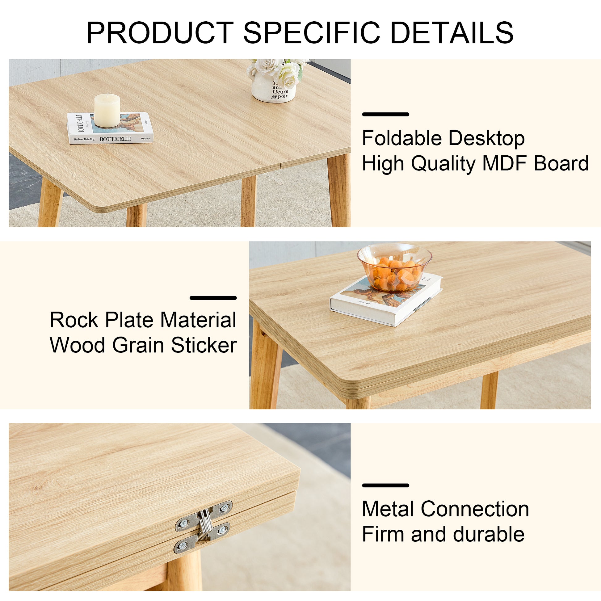 Wooden Foldable Table, Rubber Wood Leg Mfc Tabletop, Foldable Computer Desk, Foldable Office Desk, Suitable For Restaurants, Living Rooms, Terraces, Kitchens Wood Wood