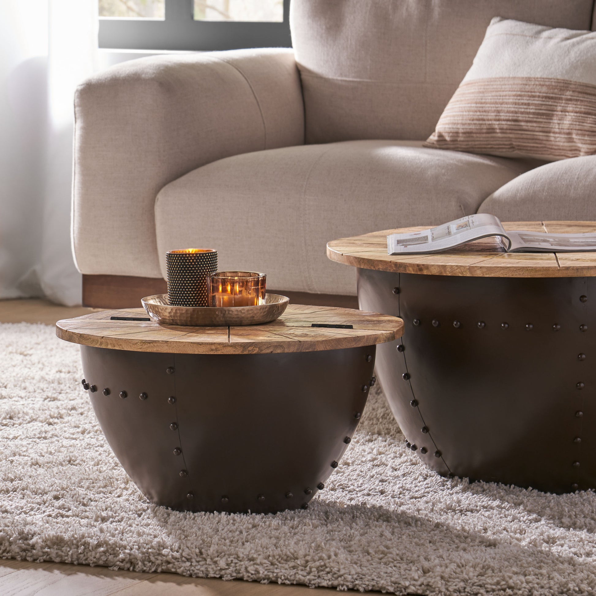 Wooden & Iron End Table Natural Metal & Wood