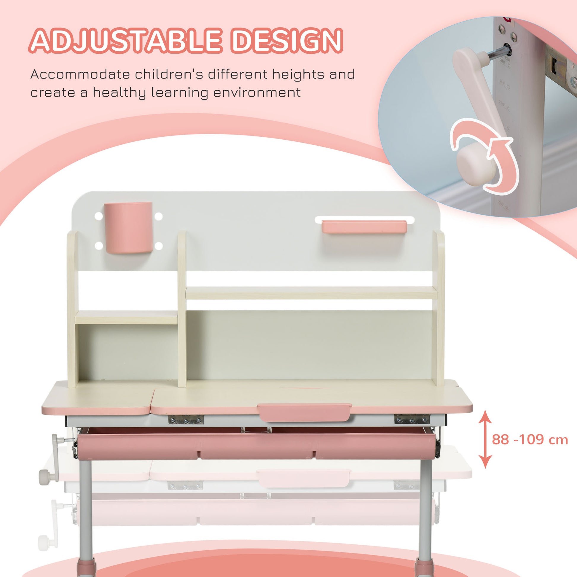 Wooden Kids Study Desk, Height Adjustable Children School Study Table, Student Writing Desk With Tilt Desktop, Drawer, Storage Shelf, Pen Holder, Pink Pink Mdf