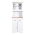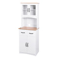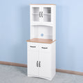 Wooden Kitchen Cabinet White Pantry Room Storage Microwave Cabinet With Framed Glass Doors And Drawer White Mdf