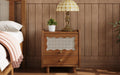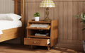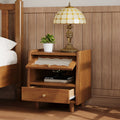 Wooden Nightstand With Rattan Woven Storage Cabinet And 1 Drawer, Exquisite Elegance With Natural Storage Solutions For Bedroom, Walnut Walnut 1 Drawer Wood